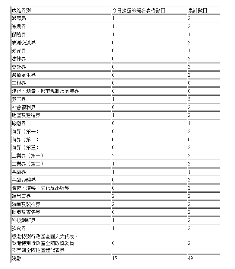 今日接獲的獲提名人士的資料稍後會上載到選舉網站。