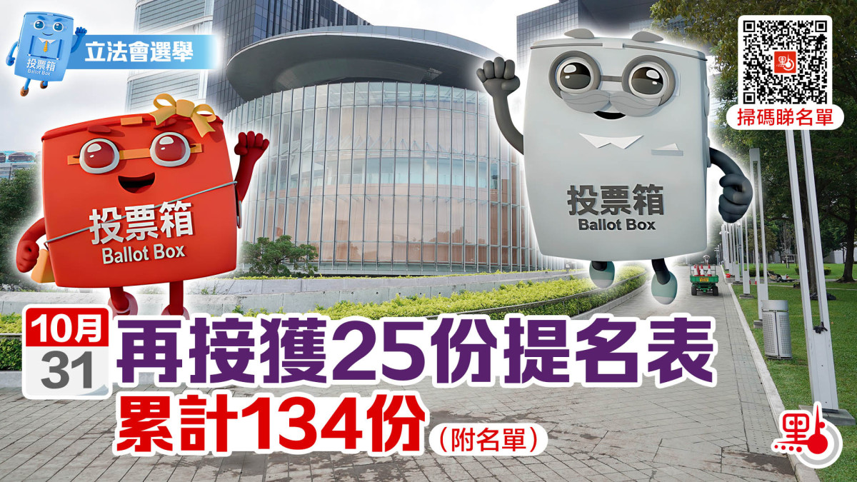 提名期10月24日開始,至11月6日結束,至今共接獲134份提名表格。
