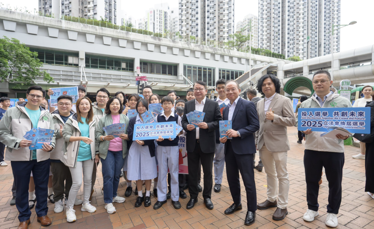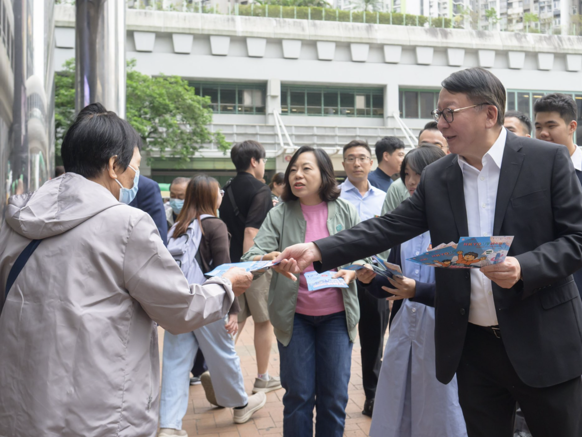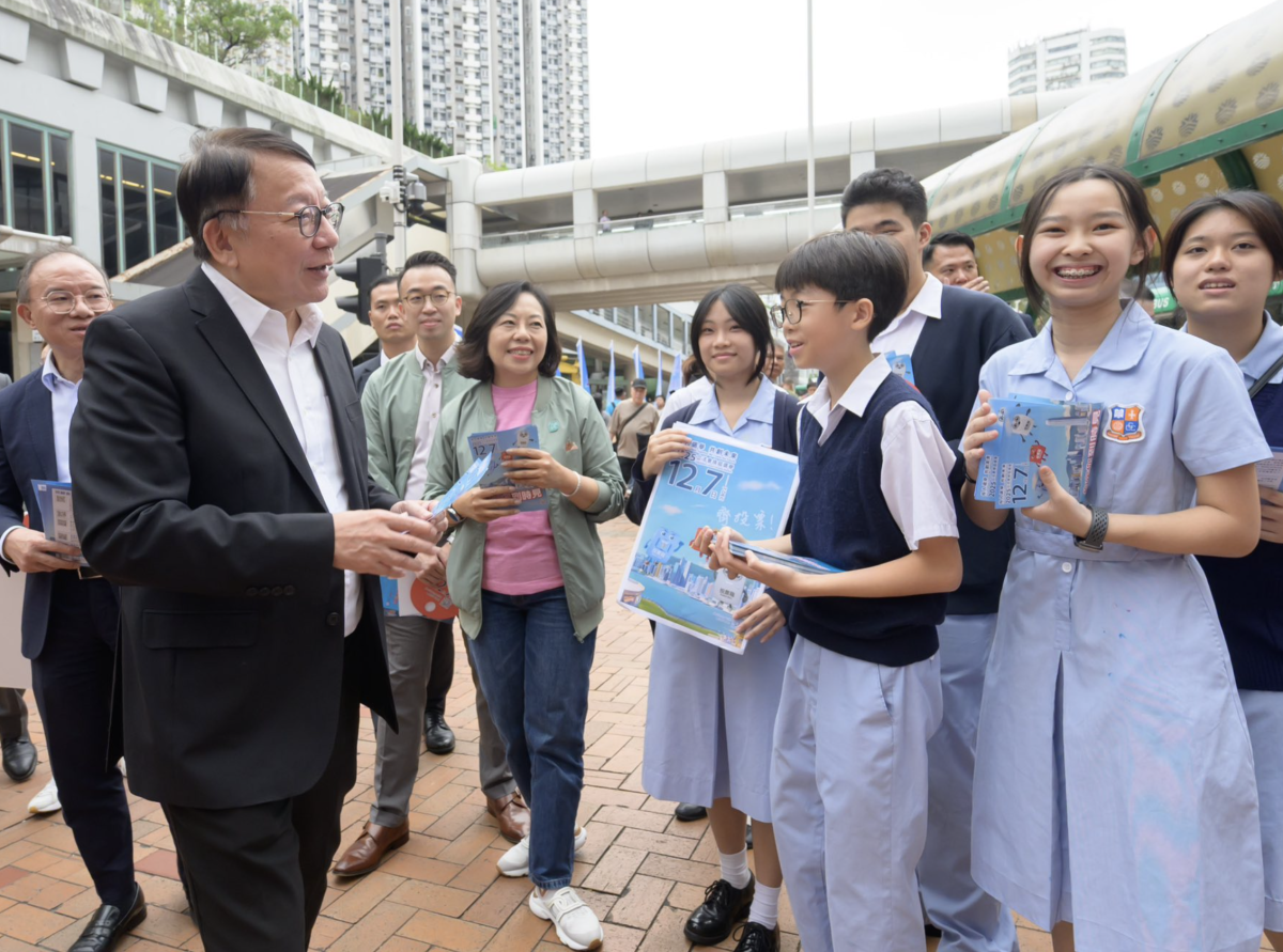 【點新聞報道】政務司司長陳國基今日(11月1日)聯同政制及內地事務局局長曾國衞和民政及青年事務局局長麥美娟落區宣傳2025年立法會換屆選舉,在葵芳港鐵站外的宣傳街站,呼籲市民於12月7日投票日踴躍投票。政制及內地事務局副局長胡健民與民政及青年事務局副局長梁宏正亦陪同出席,參與宣傳。