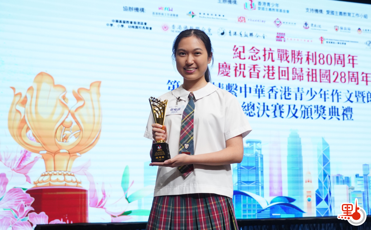 【點新聞報道】今年適逢中國人民抗日戰爭暨世界反法西斯戰爭勝利80周年以及香港回歸祖國28周年,為深化香港青少年對國家與民族歷史的認知,厚植家國情懷,「香港青少年愛國主義教育基金會」舉辦第二屆情繫中華香港青少年作文暨朗誦大賽,今日(11月1日)舉行總決賽及頒獎典禮,教育局局長蔡若蓮出席活動並致辭。本屆比賽以「回歸」與「抗戰勝利」為主題,旨在鼓勵同學透過比賽提升寫作與朗誦水平,同時增強國民身份認同,培養正面價值觀與態度。香港青少年愛國主義教育基金會會長譚錦球表示,希望藉此引導同學探索歷史事件,加深對國家及香港政治進程發展的了解與認同。