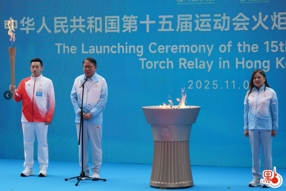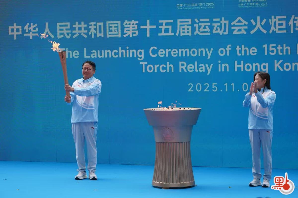 【點新聞報道】中華人民共和國第十五屆運動會(十五運會)火炬傳遞香港站起跑儀式今日(2日)早上9時半許於政府總部附近舉行,署理行政長官陳國基、文化體育及旅遊局局長羅淑佩出席活動致辭及正式點燃火炬,並交予第一棒火炬手黃鎮廷,香港賽區火炬傳遞由此展開,並將由共50位火炬手接力。【點擊觀看直播】