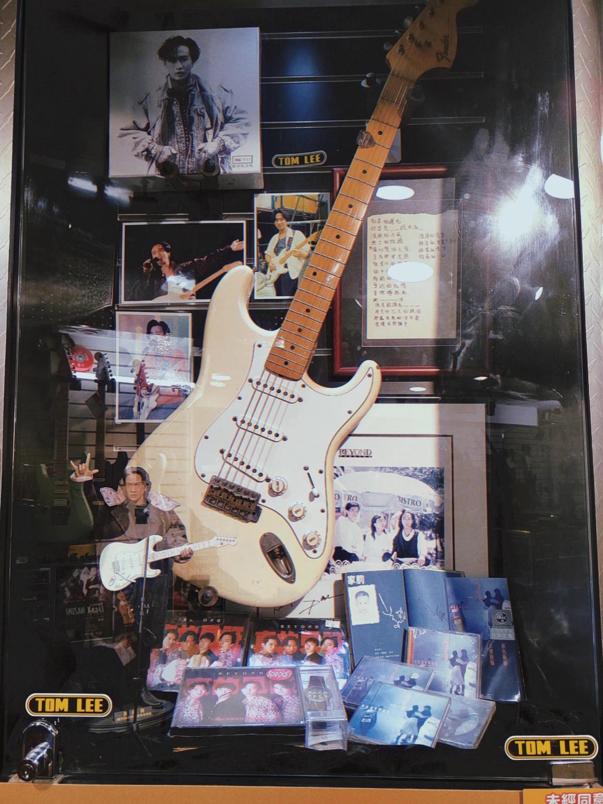 餐廳出來步行約10分鐘,即可抵達通利琴行。進門後右轉,即可看到黃家駒曾彈奏的白色電吉他和《昔日舞曲》手稿原件。店內也販售各類樂器,是不少音樂愛好者購入「紀念琴」的熱門地。