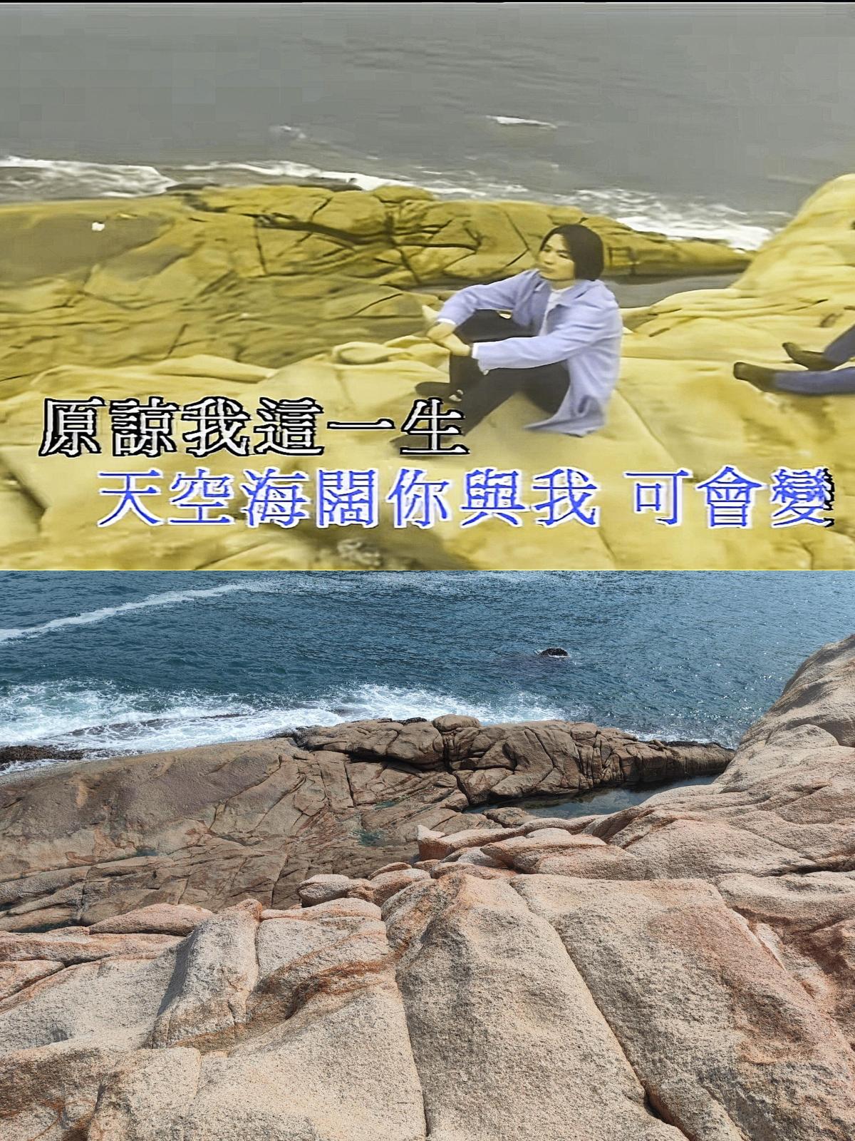 《海闊天空》MV中標誌性的藍色海灣與礁石位於石澳海灘。建議雨停後前往,視野更清、光影更美。打卡經典位置建議在「成記士多」下車後步行,途中會經過藍色拱橋與休息平台。