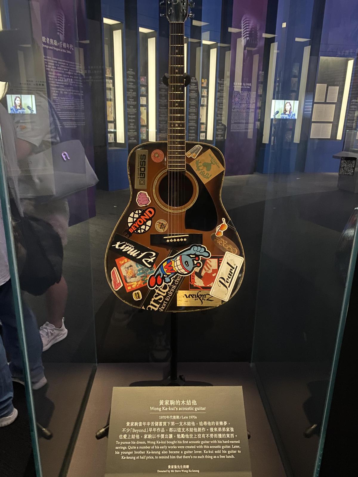 二樓右側展廳收藏黃家駒與家強使用過的木吉他及早期唱片《再見理想》。展區配有播放屏幕,能看到他們當年的影像記錄。值得細細參觀。
