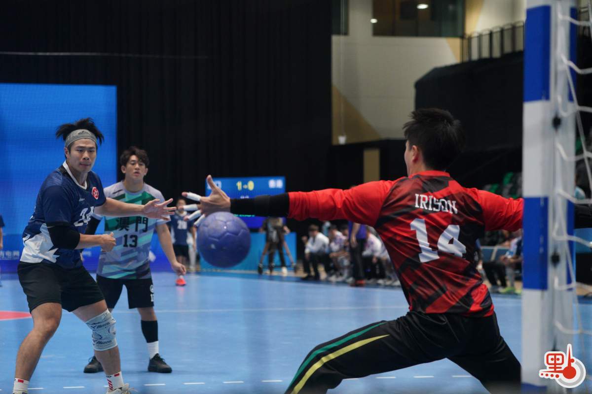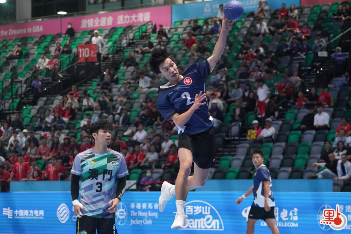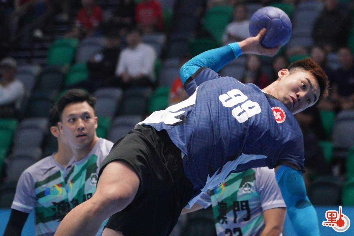 去到今日對澳門,港隊雖然先被對手攻破大門,但及後憑郭斯嗚、謝永輝及陳梓朗接連得分反超前7∶4,半場以13∶10領先。去到下半場,港隊繼續積極進攻,陳梓朗連轟兩球得分,加上黃澤橋連得3分,港隊拉開比數至19∶11,並最終以24∶15擊敗澳門,小組賽兩連勝,由於澳門隊三戰全敗,港隊已篤定以前4名出線。