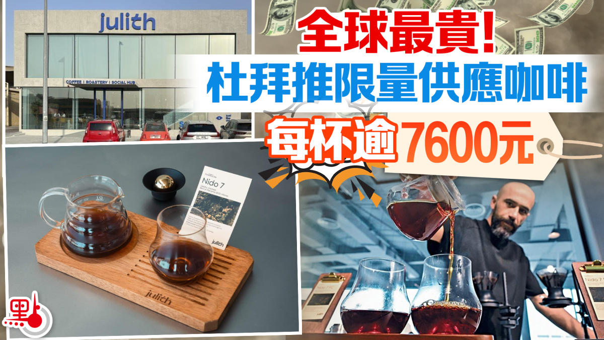 綜合報道,這款咖啡由杜拜咖啡廳「Julith」推出,每杯定價980美元(約7618港元),僅限量供應約400杯。這款咖啡採用巴拿馬矜貴咖啡豆Nido 7 Geisha炮製,帶有苿莉花及柑橘果香,十分獨特。