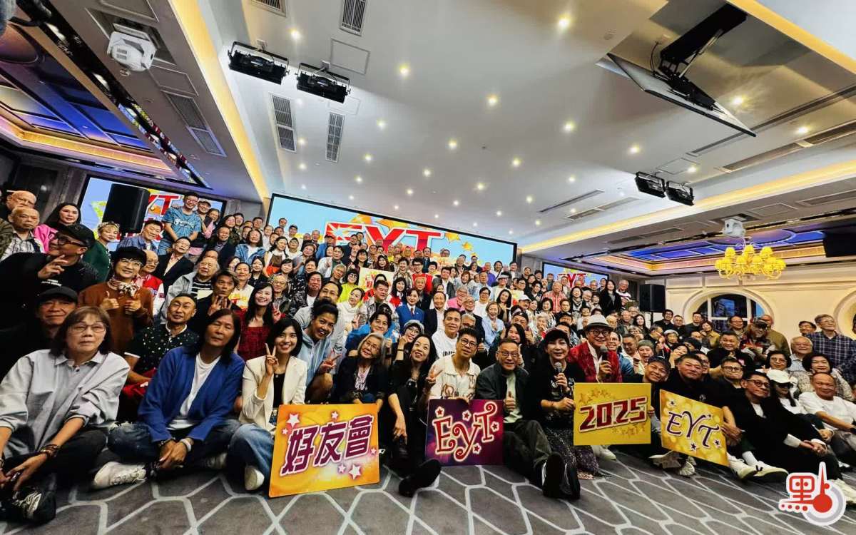 【點新聞報道】電視廣播有限公司(TVB)長壽綜藝節目《歡樂今宵》(EYT)的台前幕後逾250位昔日同事,於今日(4日)在「彩福皇宴」舉行《2025 EYT好友會聯歡晚宴》,場面溫馨熱鬧。