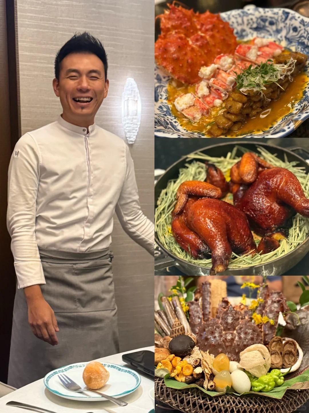 脆皮海參釀蟹肉:「鎮店之寶」將傳統食材以法式手法重新詮釋,內餡填入雌性青蟹肉、蟹膏與黃油製成的慕斯,再淋上用蟹殼、紹興酒和雞油熬制的醬汁。