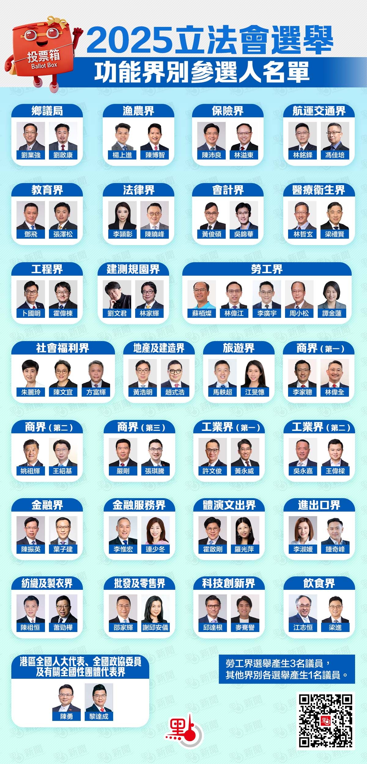 【點新聞報道】香港第八屆立法會選舉定於12月7日(星期日)舉行,提名期於今日(6日)下午5時結束,10個地方選區、28個功能界別以及選舉委員會界別的選舉主任共接獲161份提名表格,其中10個地方選區共接獲51份提名表格,28個功能界別接獲60份提名表格,選舉委員會界別接獲50份提名表格。全部90席都出現競爭,即無人會自動當選,充分反映今場選舉的多元性及公平公正原則。合資格選民將於12月7日從中選出90名議員進入議會。