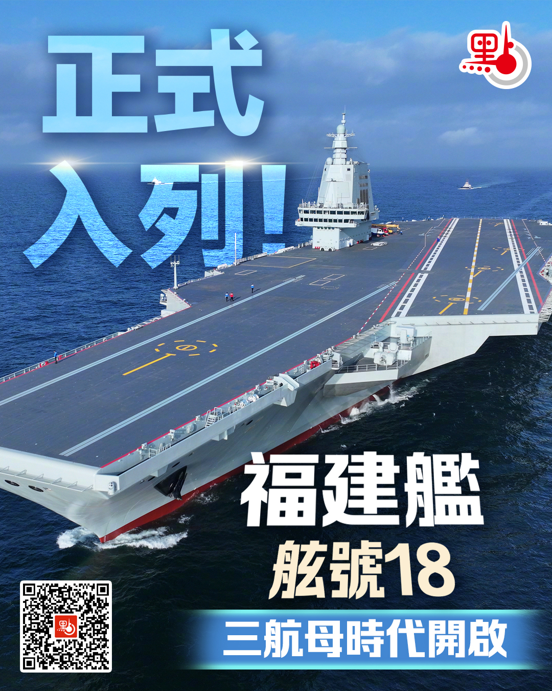 福建艦是我國第一艘電磁彈射型航空母艦,也是我國第三艘航空母艦,舷號為「18」,2022年6月下水命名。福建艦由我國完全自主設計建造,其電磁彈射技術處於世界先進水平。