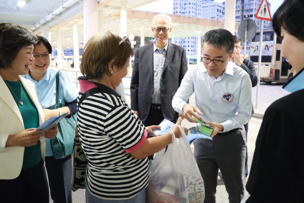 教育局局長蔡若蓮昨日(6日)聯同教育局義工隊、多位校長會及教育議會等業界代表,於旺角落區,向市民派發立法會選舉宣傳單張,呼籲大家踴躍投票,選出有能力、有承擔、代表市民心聲的立法會議員,為香港未來發展出一分力。