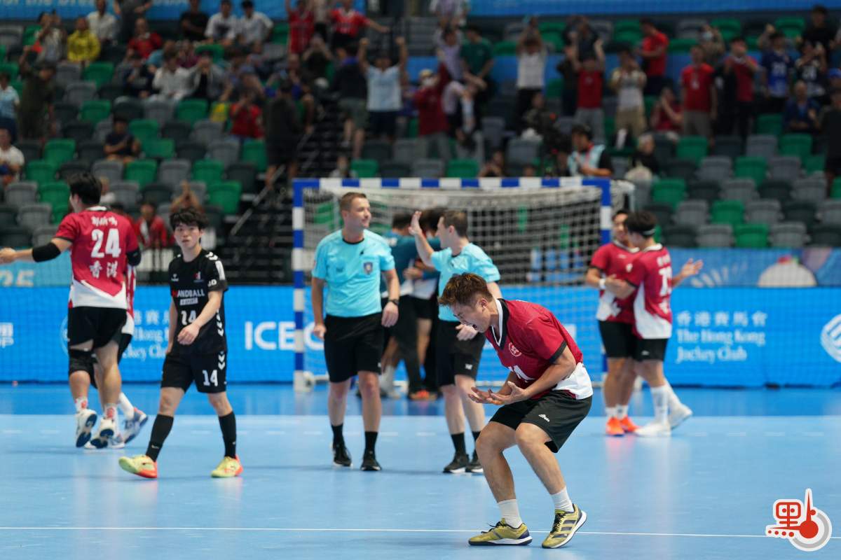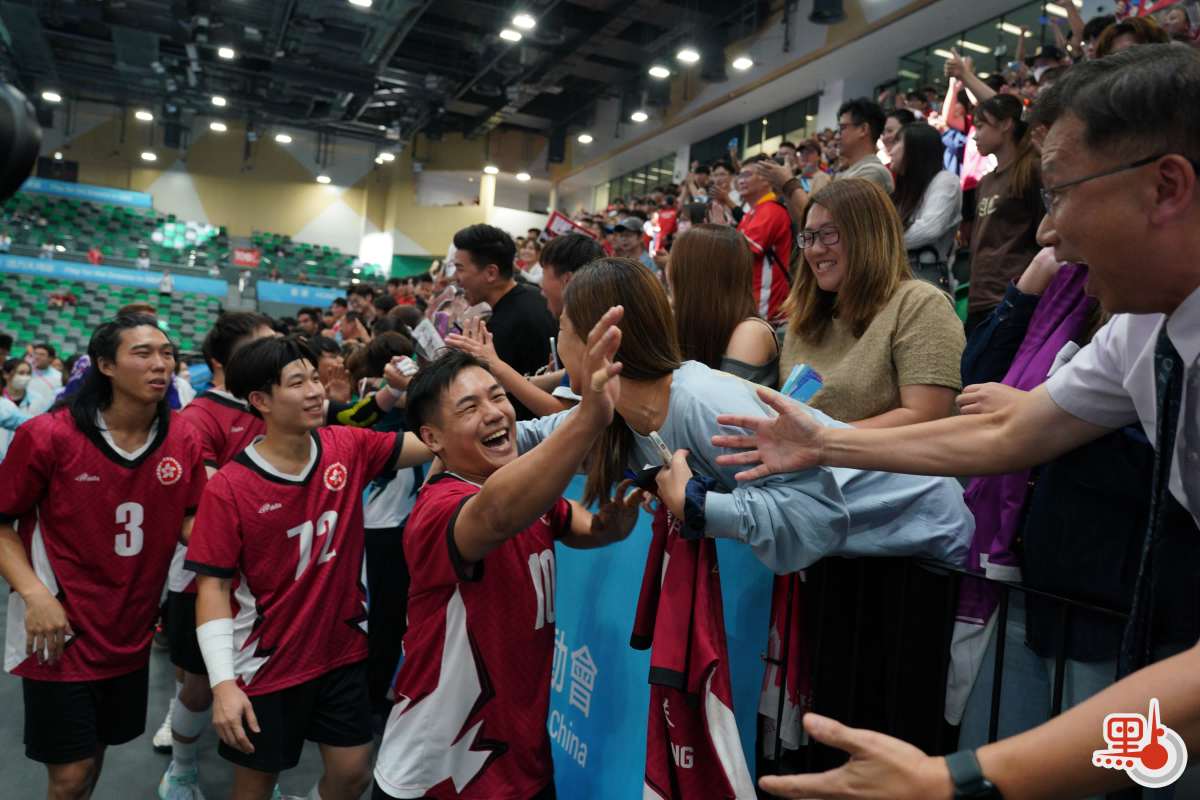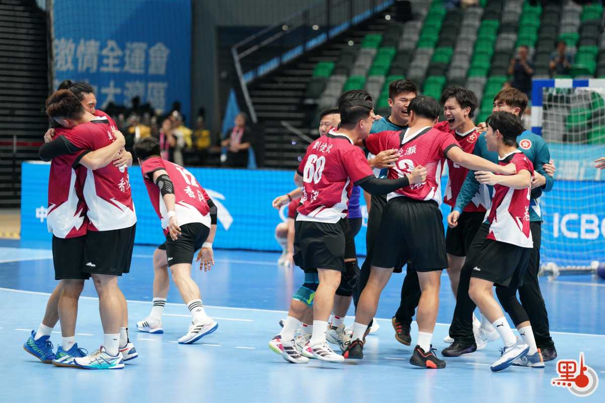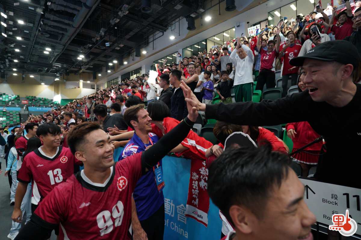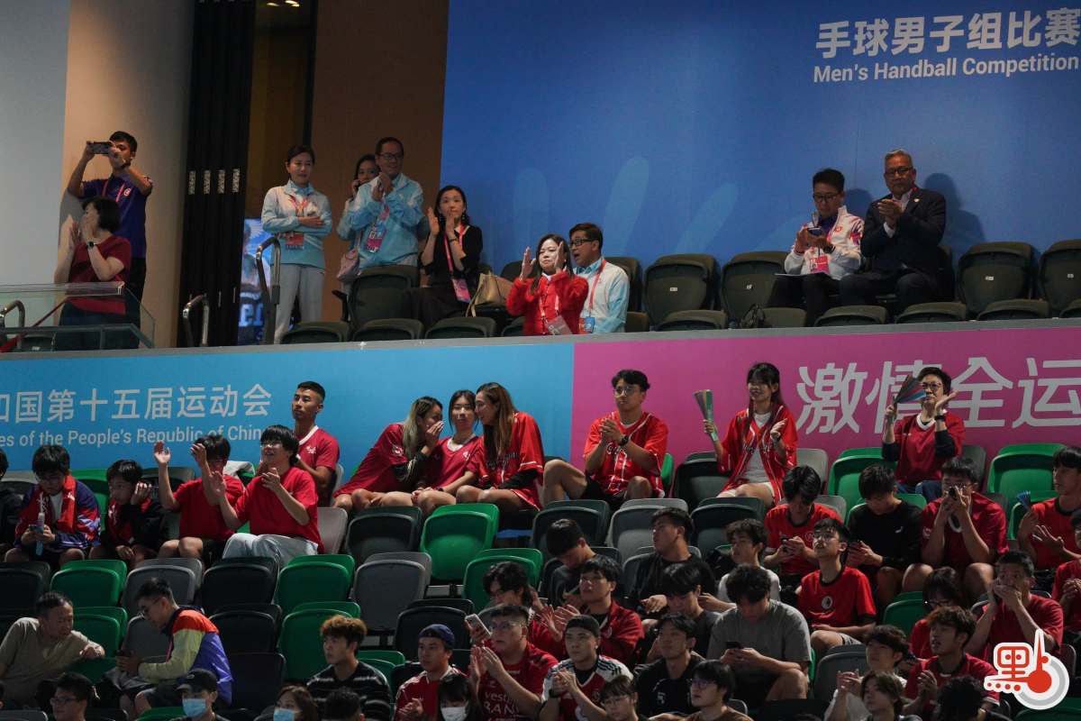 【點新聞報道】第十五屆全國運動會男子手球八強戰今日(11月7日)繼續在啟德體藝館舉行,香港代表隊以28∶26險勝廣東隊,晉級四強。賽後港隊球迷陷入狂歡,球員情緒激動,向球迷表示感謝。
