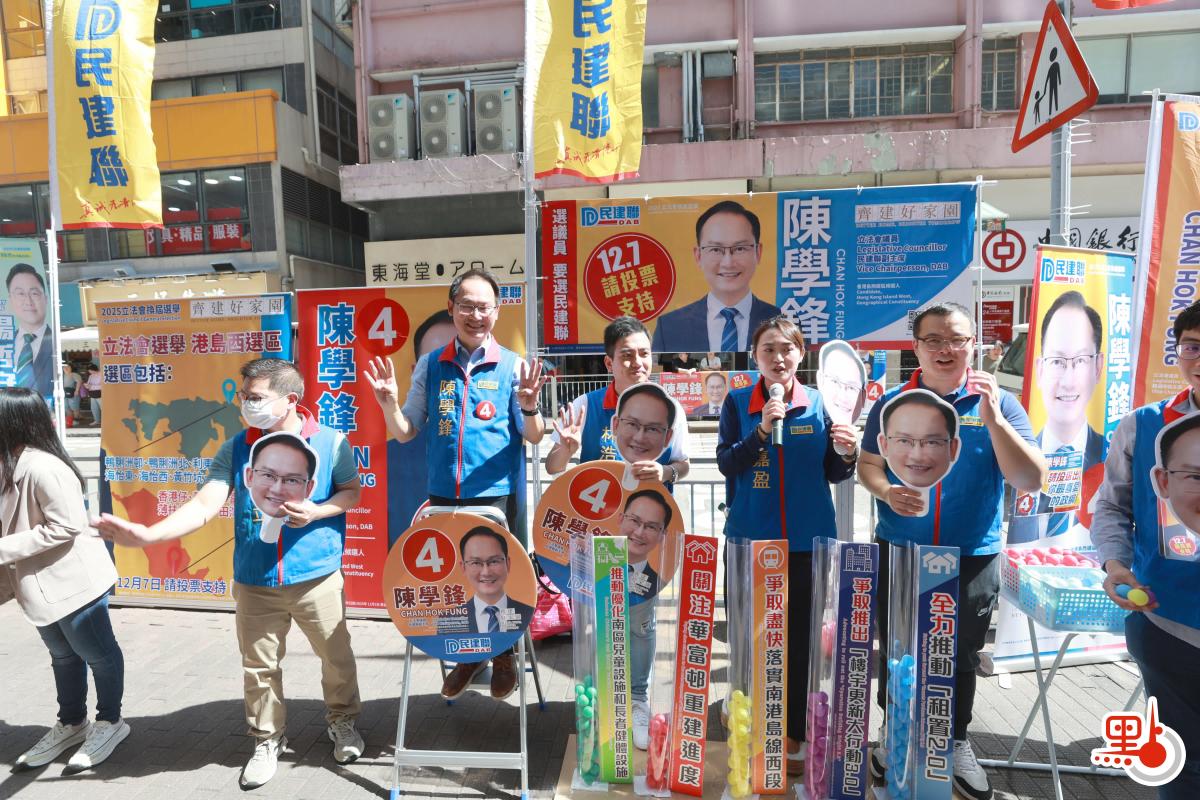 【點新聞報道】今日(8日)是2025年立法會換屆選舉提名期結束後的首個周末,各區參選人紛紛落區宣傳自己的政綱和理念,期望讓更多市民認識自己,並號召所有市民在12月7日踴躍投票。其中港島西選區的5位參選人,今日齊聚香港仔成都道,各自高呼選舉口號,聲勢浩大,全力拚政綱、拚能力、拚投入,讓街坊市民可一次性認識所有人,同時做出對比,在選舉日中投下自己神聖的一票。