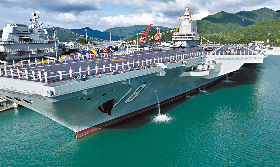 香港文匯報援引新華社報道,11月5日,中國第一艘電磁彈射型航空母艦福建艦在海南三亞某軍港入列。8日下午,海軍新聞發言人冷國偉海軍大校就福建艦部署地點、艦載機配備和中國海軍航母發展計劃等問題,接受記者書面採訪。