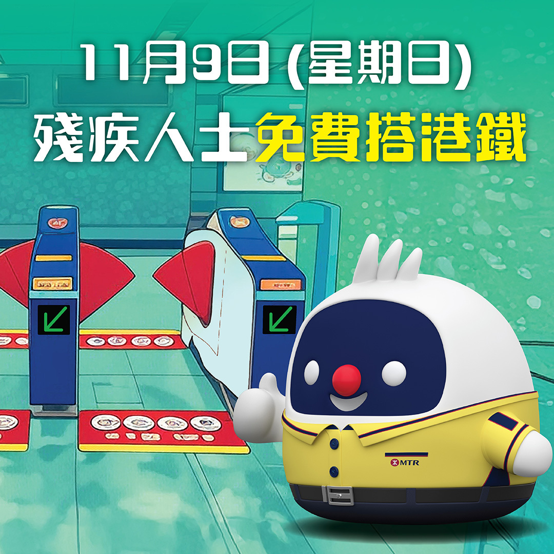 港鐵表示,合資格乘客今日只需出示其中一項有效證明文件,即可連同一名照顧者免費乘搭港鐵,證明文件包括殘疾人士登記證、註有「殘疾人士身份」的個人八達通或註有「殘疾人士身份」的樂悠咭。今次優惠不包括東鐵綫頭等及高速鐵路。