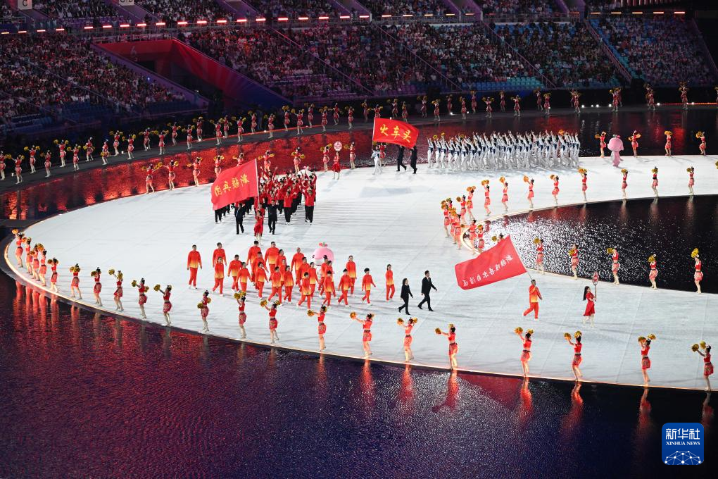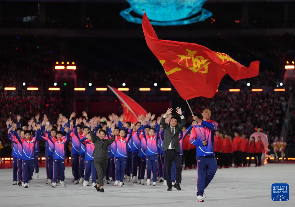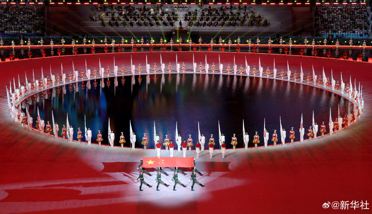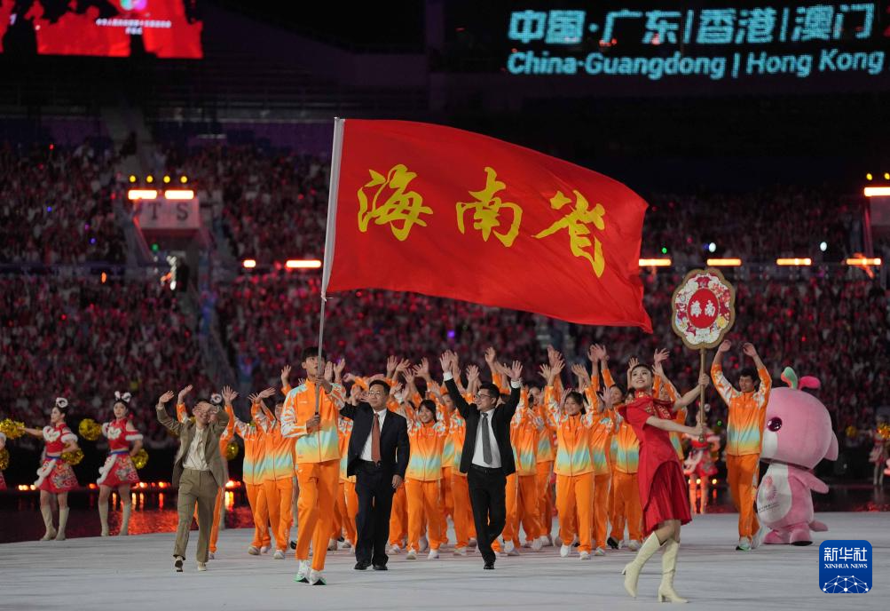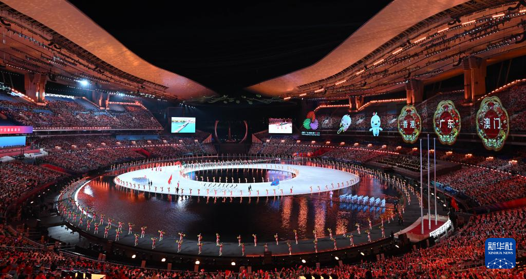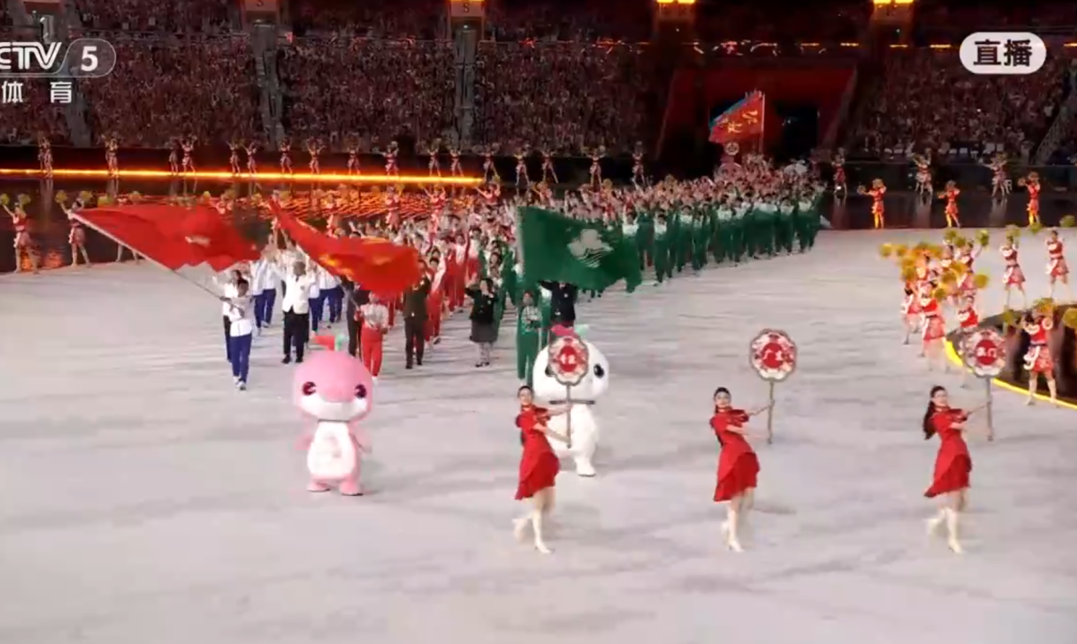 【點新聞報道】第十五屆全國運動會開幕式9日晚在廣東奧體中心盛大舉行,快隨點新聞一睹大美盛事。據央視新聞報道,中華人民共和國第十五屆運動會開幕式開始,迎中華人民共和國國旗、中華人民共和國運動會會旗、第十五屆全國運動會會旗入場。