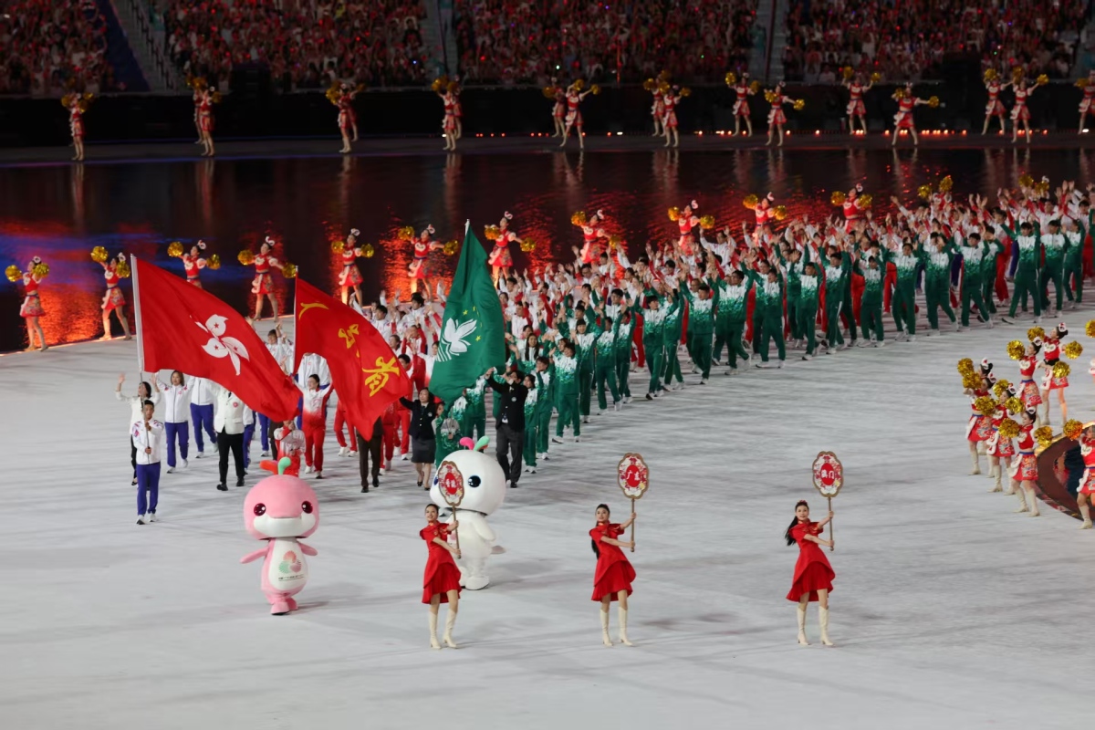 粵港澳體育代表團同時入場,全場沸騰。(人民日報圖片)