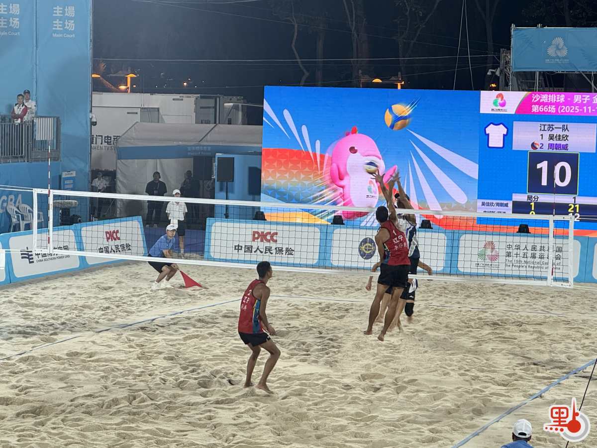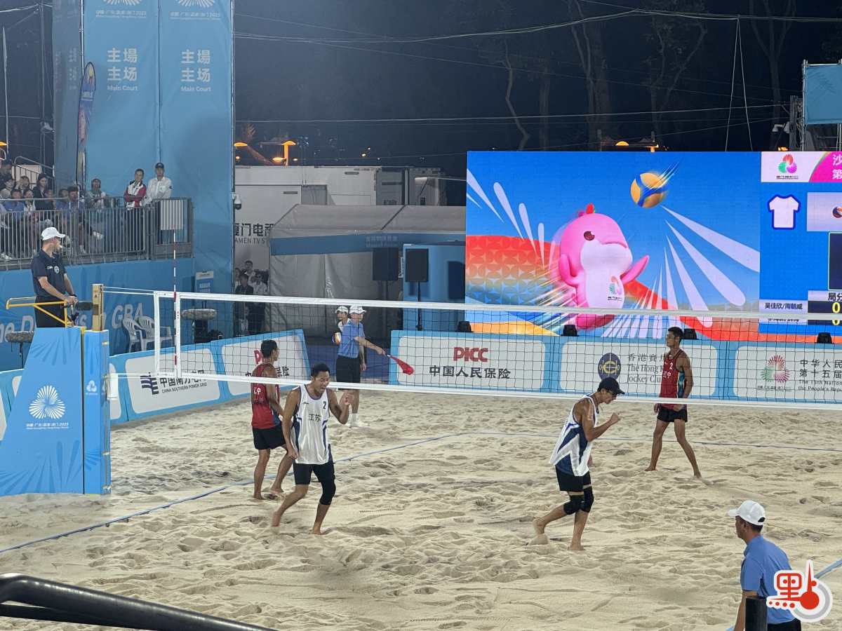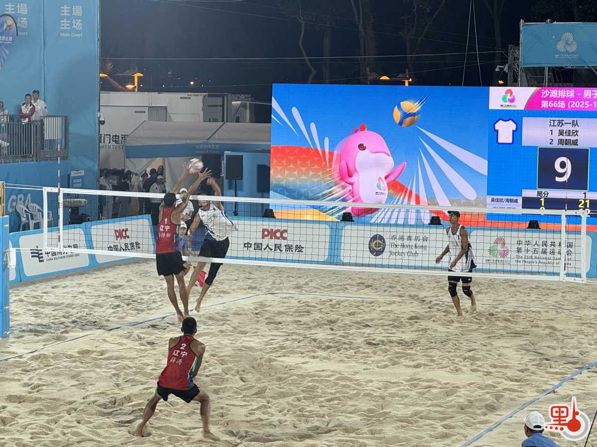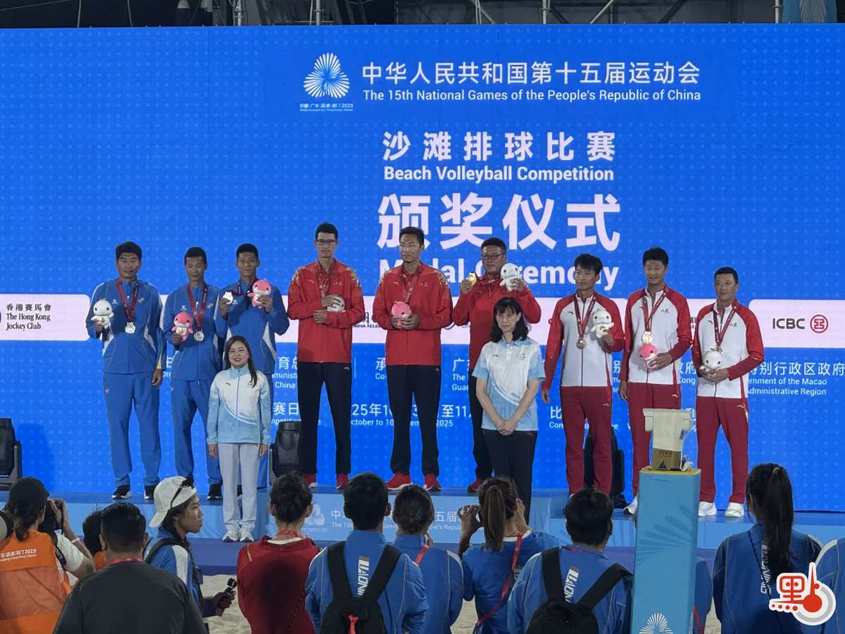 【點新聞報道】第十五屆全運會香港賽區項目沙灘排球男子決賽今日(10日)於維多利亞公園完賽,由江蘇一隊連勝兩局最終拿下整場比賽。沙灘排球男子組的最終排名出爐,江蘇一隊的吳佳欣和周潮威獲得冠軍,遼寧一隊的李焯新和薛濤獲得亞軍,以及來自山東的王延偉及杜鴻君獲得季軍。