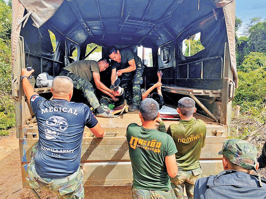 泰國與柬埔寨邊境的四色菊府周一(11月10日)上午發生地雷爆炸,兩名泰國士兵受傷。泰國總理阿努廷同日在皇家警察總部對媒體說,就泰國士兵在泰柬交界處因地雷爆炸受傷一事,他已指示有關部門考慮向東盟臨時觀察團抗議柬埔寨,並決定暫停執行泰柬和平聯合聲明。泰總理府發言人西里蓬也說,原定於周三釋放柬埔寨被俘人員的計劃也將暫停。