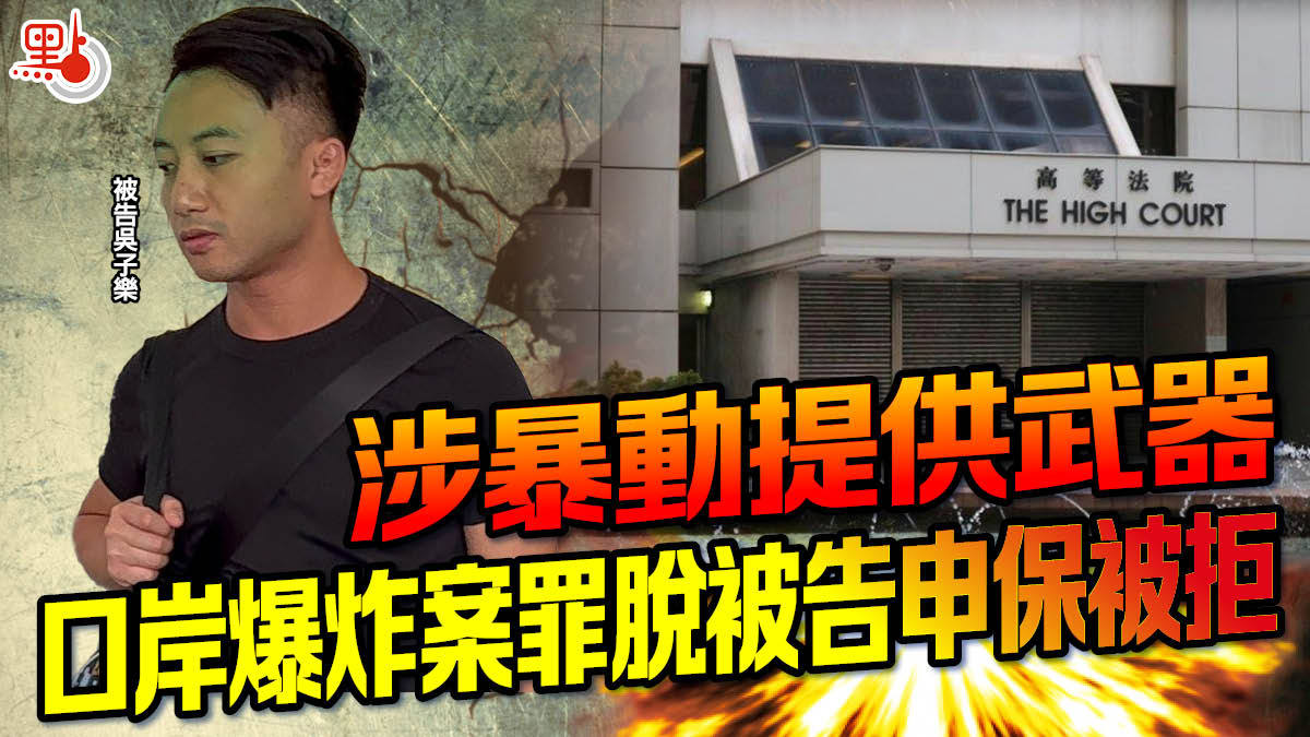 【點新聞報道】「醫院口岸爆炸案」脫罪的被告吳子樂,上月底被警方國安處拘捕,涉嫌於2019年為參與暴動人士製造及提供武器,以及拍攝片段宣傳。吳子樂被控串謀煽惑暴動及煽惑暴動罪,昨日到高等法院申請保釋,法官譚耀豪聽取雙方陳詞後,拒絕其保釋申請,須繼續還押候訊。