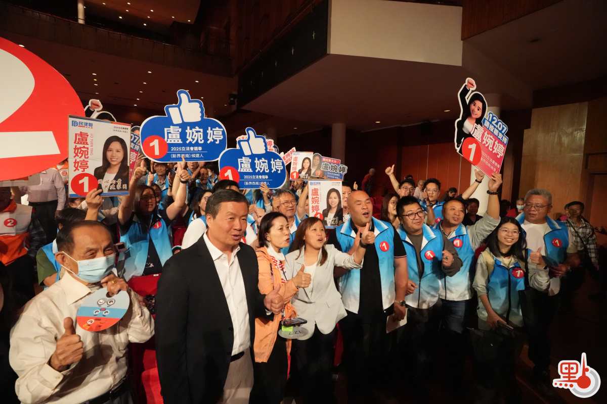 選舉論壇現場,5位候選人的助選團隊紛紛集氣拉票,氛圍熱烈。