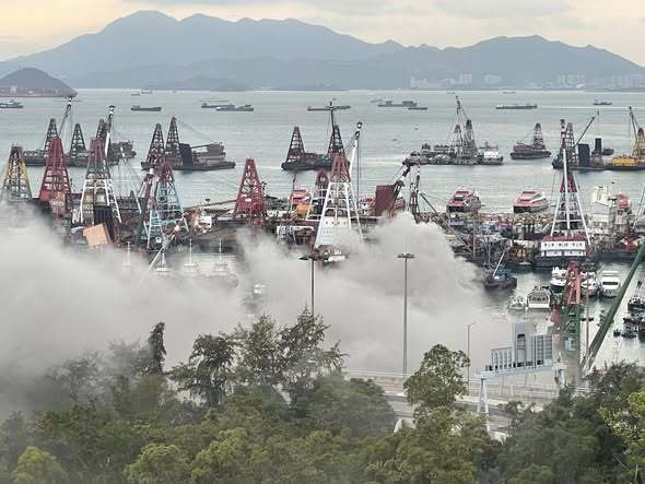 消防出動一喉一煙帽隊灌救,滅火輪亦在場協助,初步沒有受傷報告,惟現場一帶的車路同樣煙霧瀰漫。