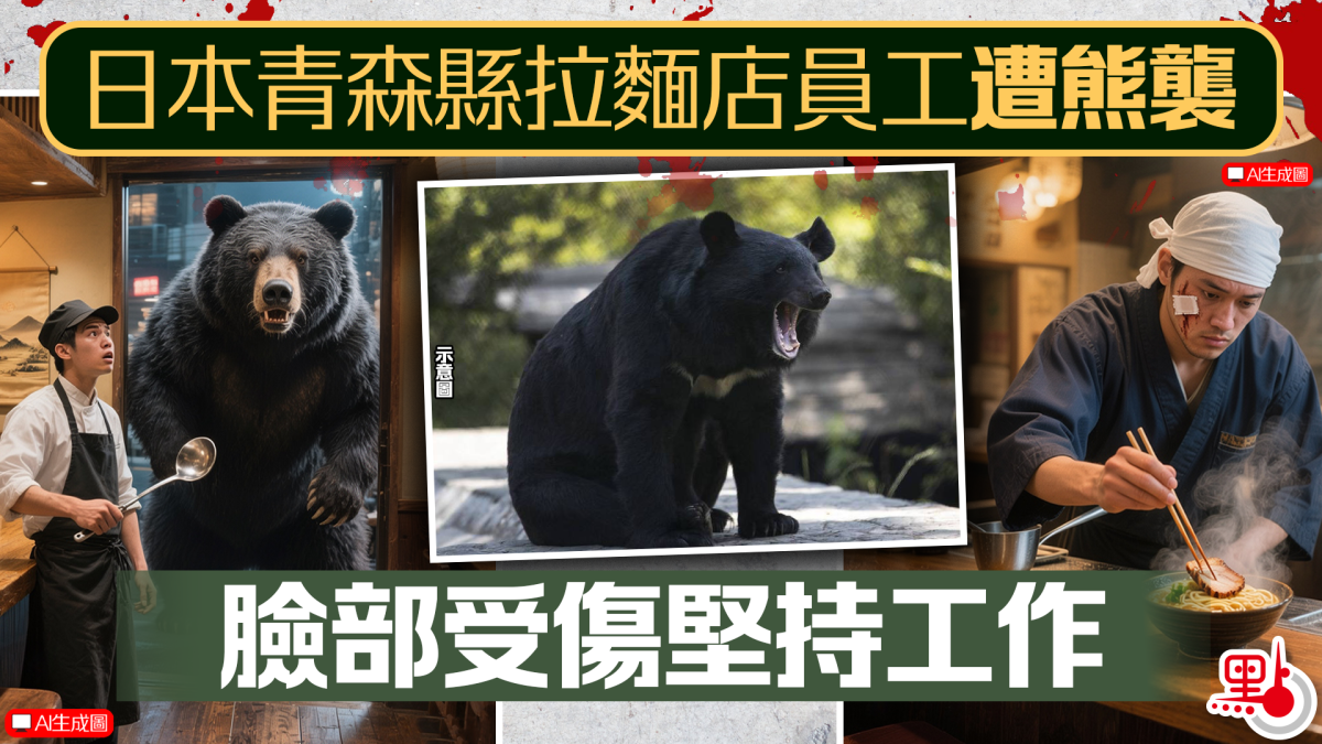 【點新聞報道】日本頻傳熊襲事件。前日(9日),青森縣一間拉麵店的員工在準備食材期間,突然被熊襲擊,導致臉部受傷,但他依然繼續做食材準備的工作,待其他店員上班後才報警前往醫院就醫。