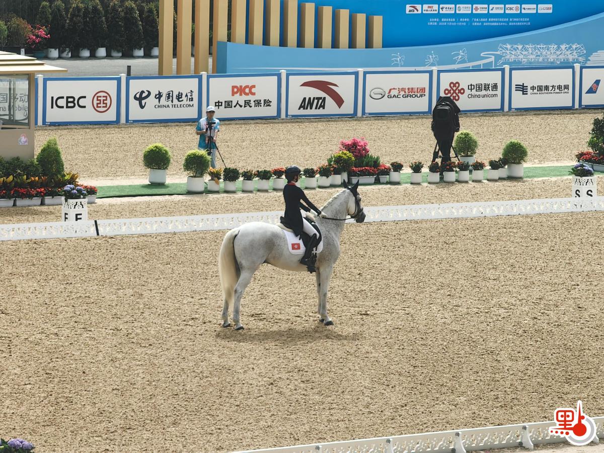 在首日資格賽中,何苑欣的馬匹「Lord Sandro K」在入場時,略微受到了熱情觀眾們的掌聲影響,在熱身後有些小緊張。今日的預賽中就狀態不錯,已適應場地新環境,最終以66.853的分數順利進入決賽。「這次參賽的目標就是進入決賽,爭取獎牌,現在就是好好休整,全力以赴。」何苑欣說。