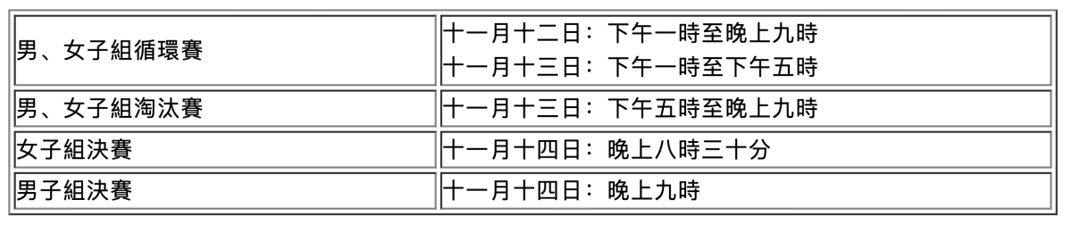 比賽日程