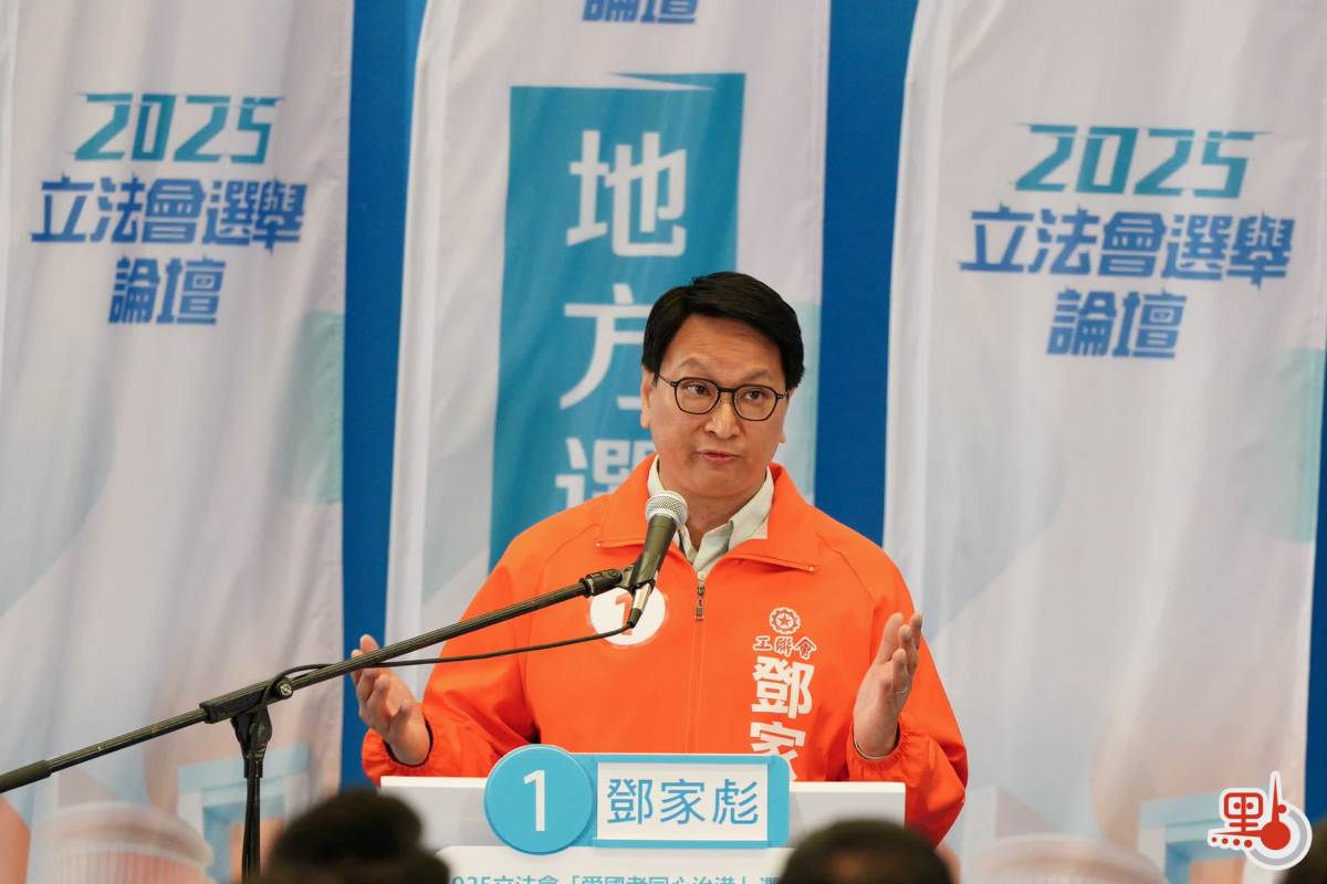 九龍東地方選區1號候選人、工聯會現任立法會議員鄧家彪指自己從政23年,成功推動三件事:第一,取消強積金對沖,保證打工仔退休補貼,如今成功推動修例並生效;第二,取締劏房,成功推動用「簡樸房」踏出告別「劏房」第一步;第三,重視居家安老,推動區內長者普查,成立長者名冊,並在家中安裝裝置,避免長者意外發生。鄧家彪強調,從政不能做旁觀者,或評論員,而要以身作則,希望能繼續服務社會、服務市民。