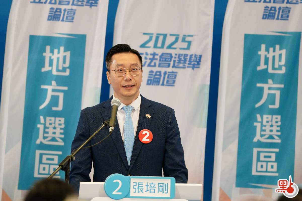 九龍東地方選區2號候選人、民建聯現任觀塘區議員張培剛指自己過去10年擔任當區區議員,長期扎根社區,最熟悉區情,最熟悉居民的想法。張培剛介紹自己的參選政綱內容,包括打擊黑工;重推出售公屋;爭取豁免首次置業者印花稅,樓價上限1000萬;推動幸福屋邨政策,提升居民生活質素;推動安老服務等。