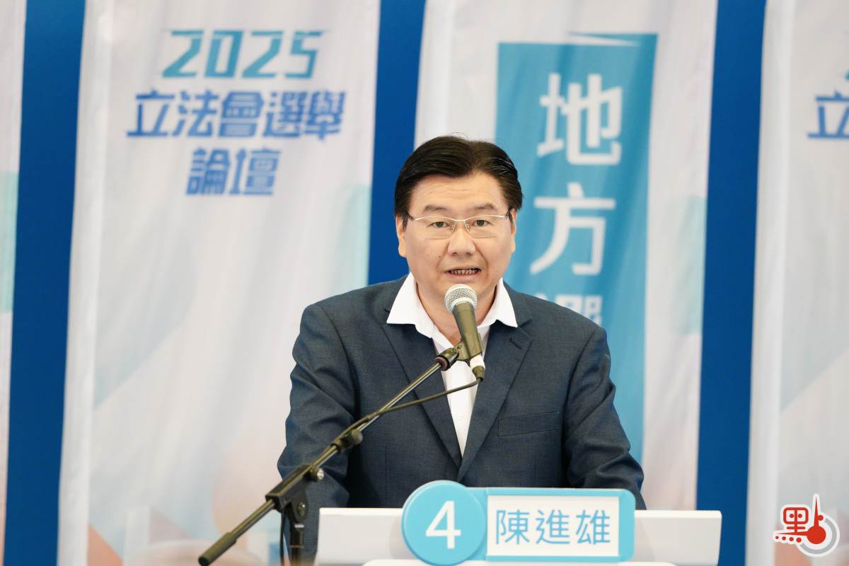 九龍東地方選區4號候選人、報稱以個人名義參選的陳進雄表示自己雖然沒有大黨支持,但相信「香港人齊心,能跑出新機遇」。陳進雄曾參加2021年第七屆立法會選舉,同樣競逐九龍東選區,惟最終落選,今屆捲土重來。他指若自己能成功當選,將致力提升議會效率;監督政府節流減赤,用好公帑;推動熊貓經濟;關心民生,推動基層醫療,推行便利通關等,令香港更宜居。