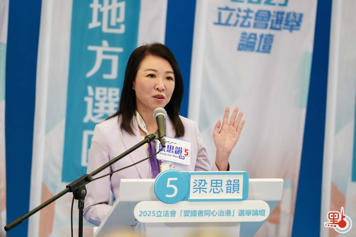 九龍東地方選區5號候選人,現任觀塘區區議員、註冊教師梁思韻,報稱無政治聯繫,今屆是其首次報名參選立法會議員。梁思韻提出自己的參選政綱,包括支持本地就業優先,致力發展九龍東經濟,推行舊區重建,發展極具當區特色的11公里海濱經濟,指若居民能留區消費就能增加九龍東經濟;此外,推行安居樂業,爭取允許市民提前提取部分強積金MPF作首次置業首期等。