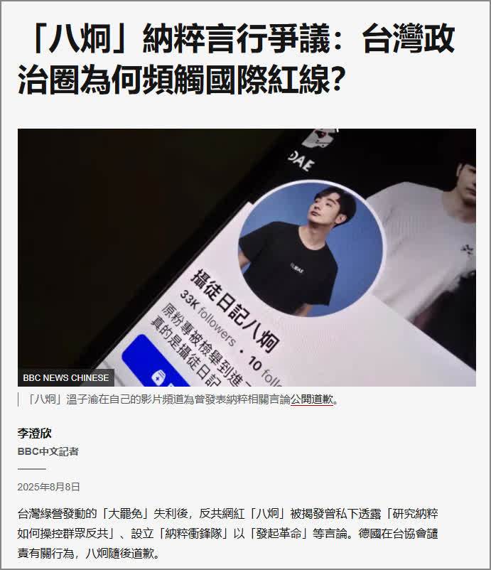 2025年8月3日,陳柏源指控溫子渝曾私下研究納粹如何群眾動員「反共」,甚至想發明「新的手勢」、「把部分人當成猶太人」以及建立「納粹衝鋒隊」。