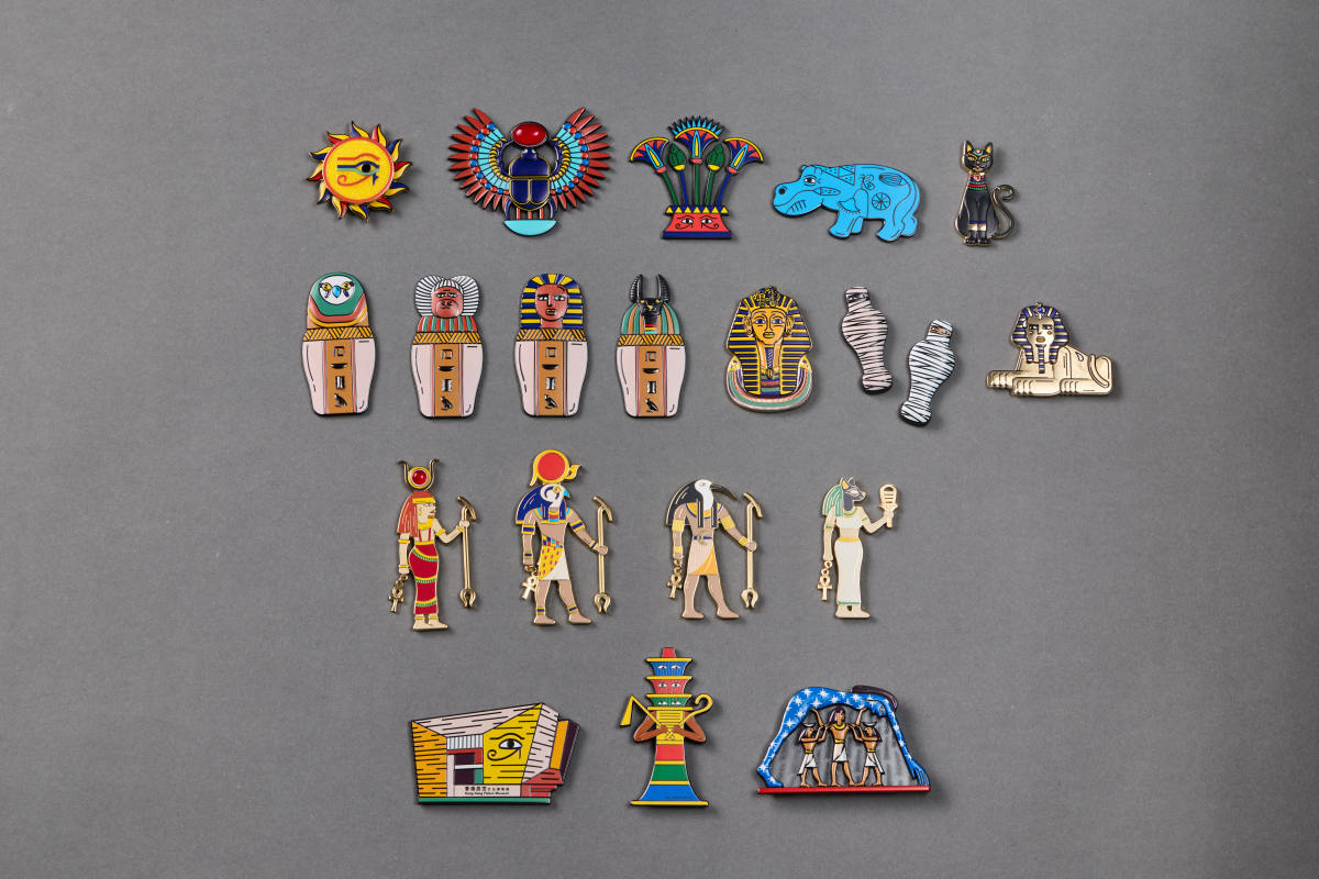 鍾愛大膽設計的顧客不可錯過「拉之眼」與木乃伊手挽袋;貼心單品則包括木乃伊襪子、保溫瓶,以及啟發自卡諾皮克罐的針織手袋及斜孭袋,為生活美學增添別致趣味。如想收藏小巧精緻的紀念品,商店亦提供豐富選擇,如仿古埃及符號、卡諾皮克罐、神祇與木乃伊造型的琺瑯磁鐵,以及為閱讀增添儀式感的金屬書籤。