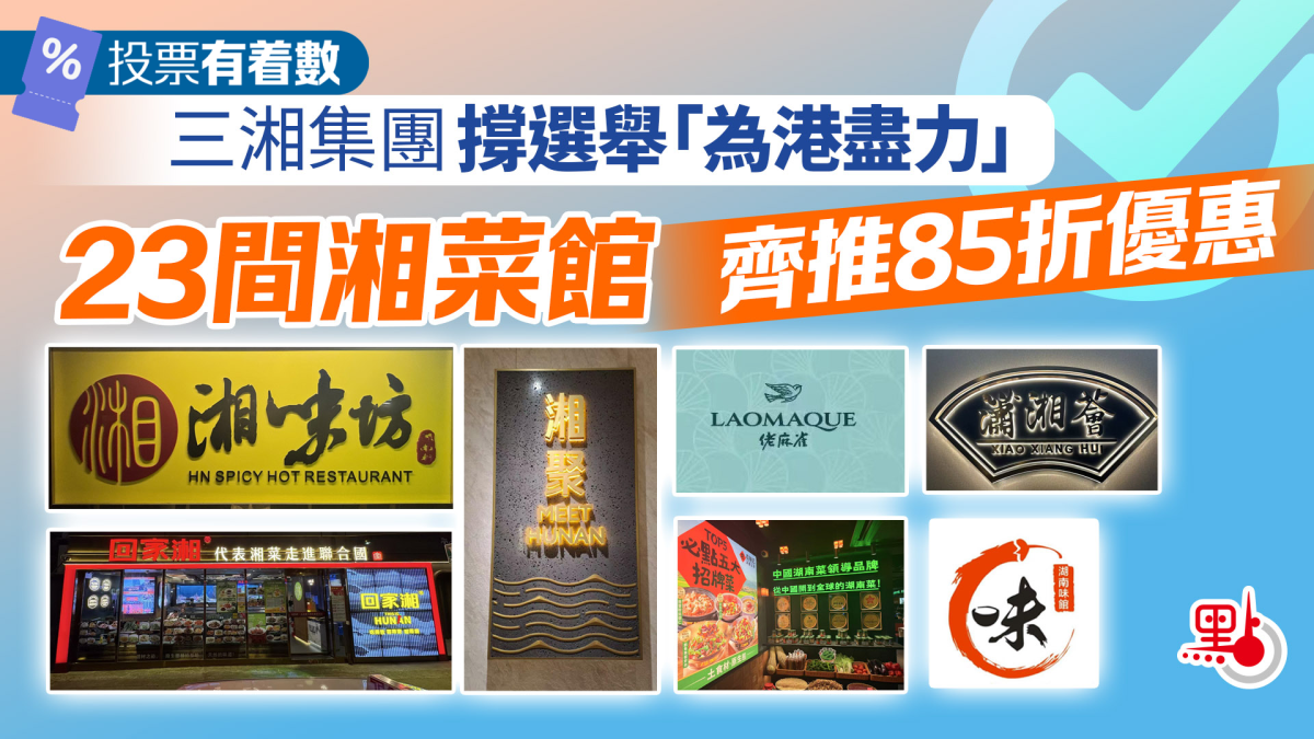 【點新聞報道】新一屆立法會選舉投票將於12月7日舉行,現時本港社會掀起鼓勵市民盡公民責任、積極參與投票的熱潮,繼點新聞、大公報日前獨家報道有多間餐廳響應推出12月7日選民專屬用餐優惠後,三湘集團更號召23間湘菜館齊推投票優惠,當日市民投票後憑相關憑證到店消費,即可享受全單85折優惠,冀以此鼓勵選民積極投票,亦體現企業社會責任。