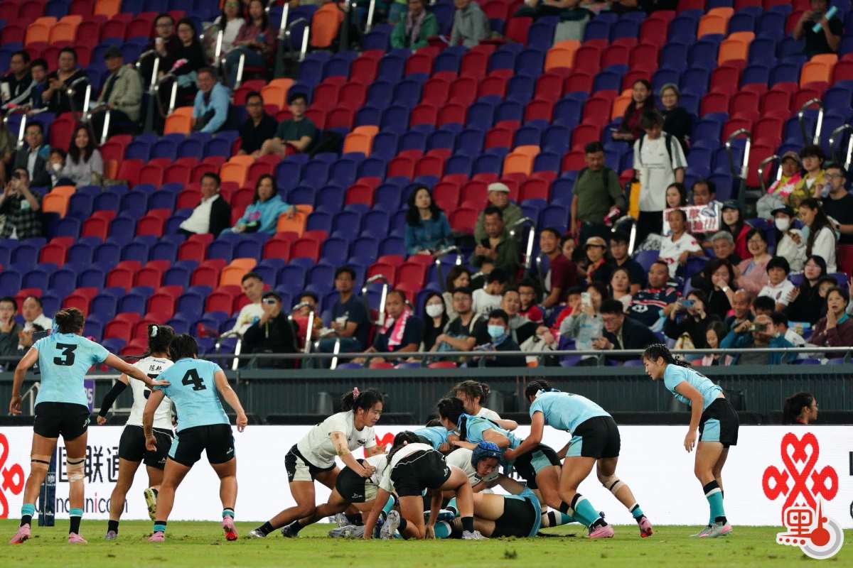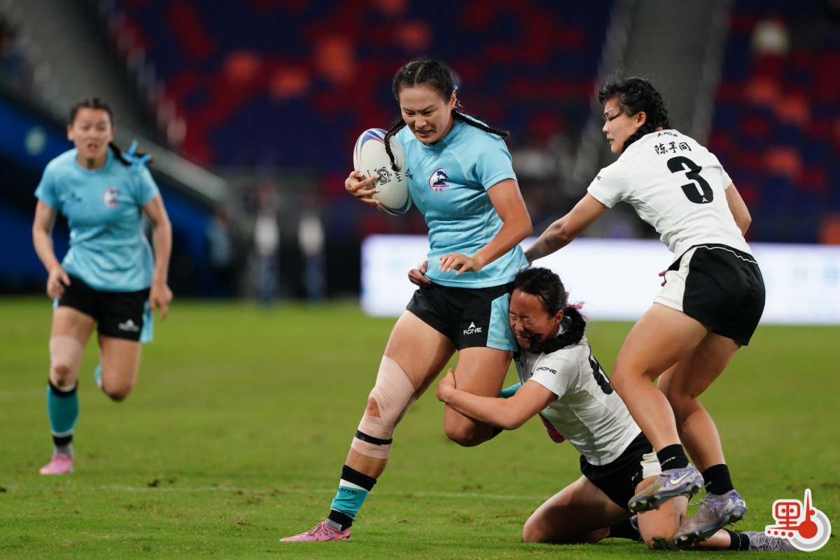女子七人欖球銅牌戰四川5∶0安徽。(點新聞記者麥鈞傑攝)
