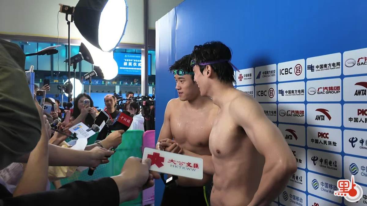 賽後採訪中,潘展樂偶遇男子200米混合泳冠軍汪順,兩位同樣來自浙江隊的冠軍握手拍肩膀,相互恭賀獲得各自項目的冠軍。此外,在今日的比賽中,很多從港澳趕來的觀眾為潘展樂加油。潘展樂貼心囑咐大家「冬天不要感冒,要注意身體」。