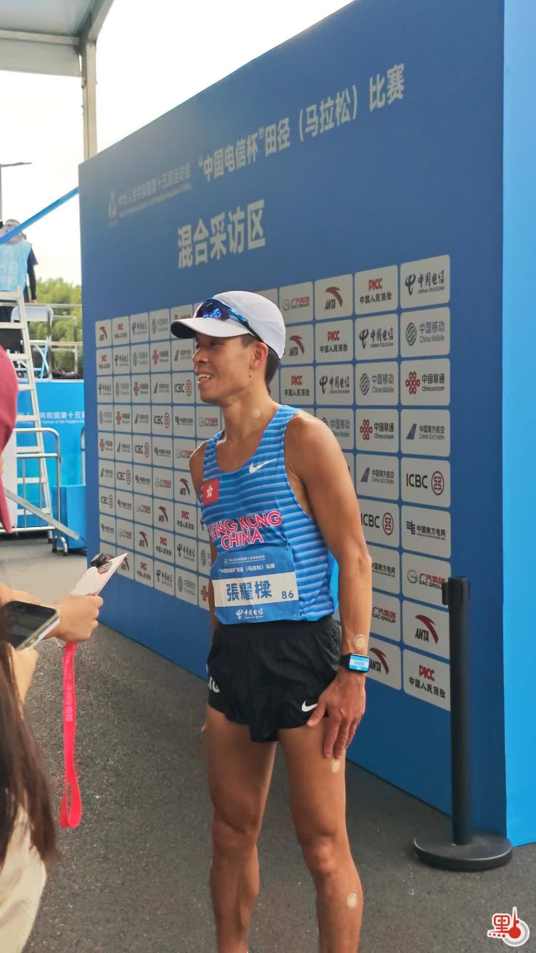 現年42歲香港選手張耀樑是本屆全運會跨境馬拉松項目中年紀最大的運動員,他以2小時27分12位列25名。張耀樑透露,這是他第一次代表香港參加全運會,因為年齡關係,也可能是最後一次,雖然成績不太理想,但能參與其中已是非常榮幸。