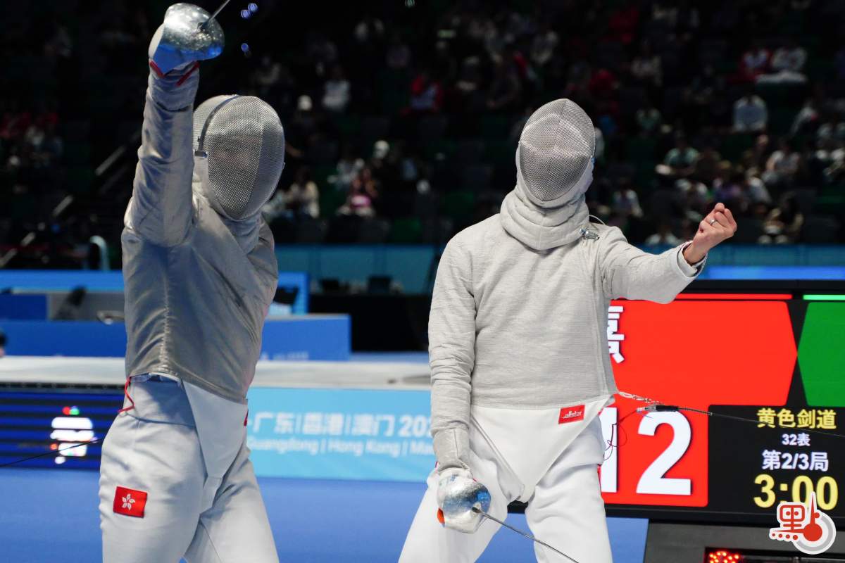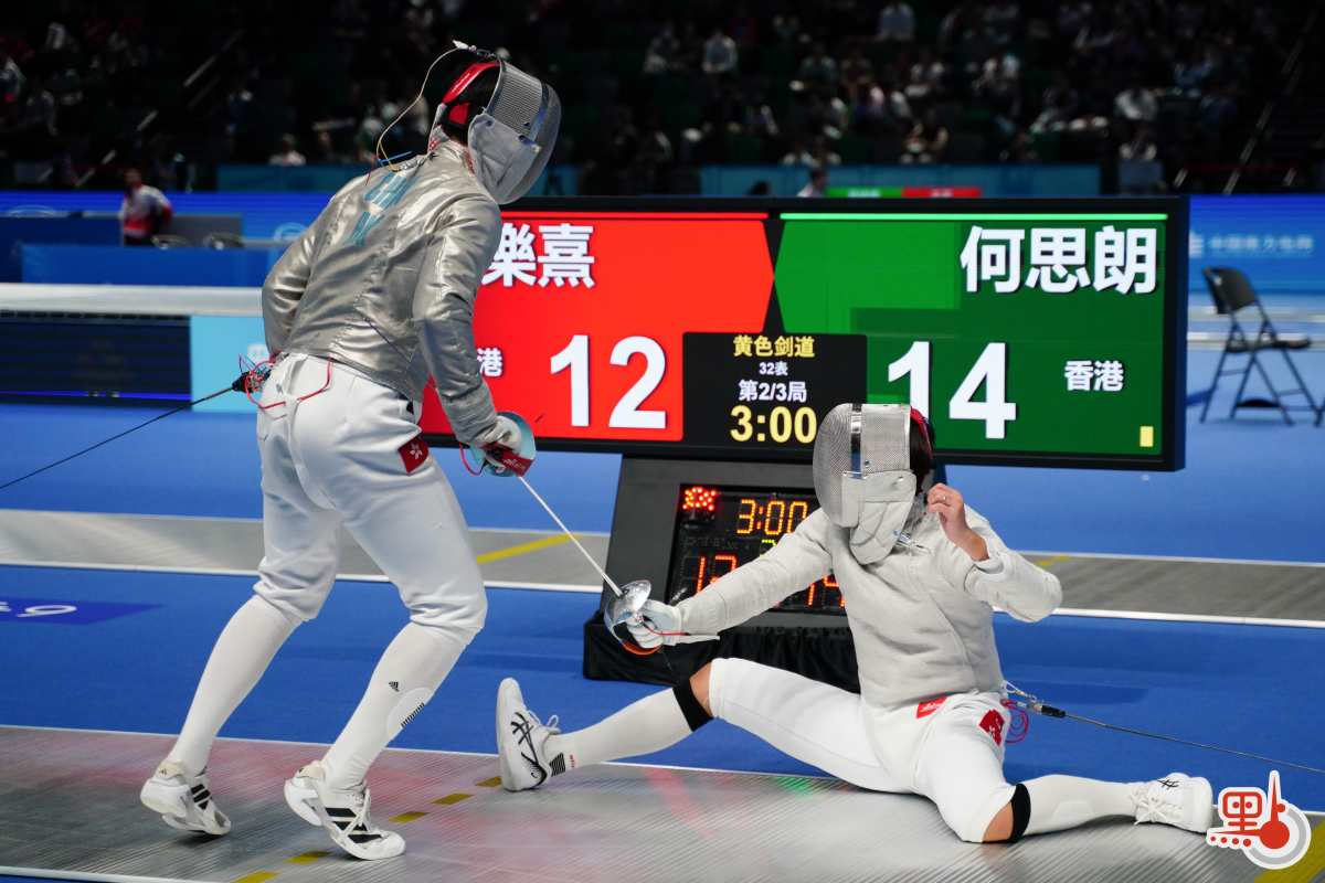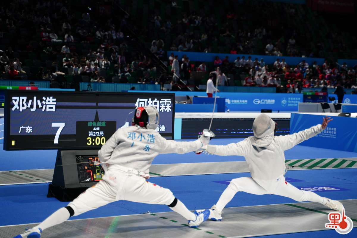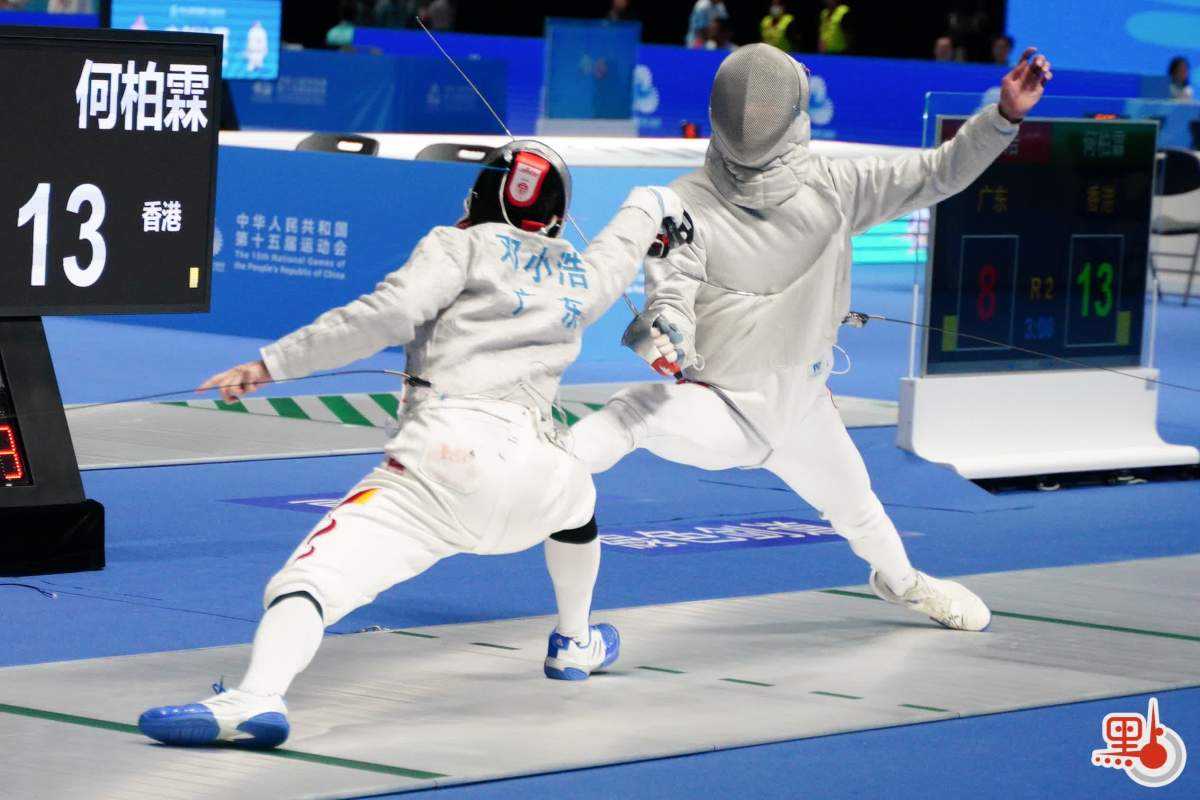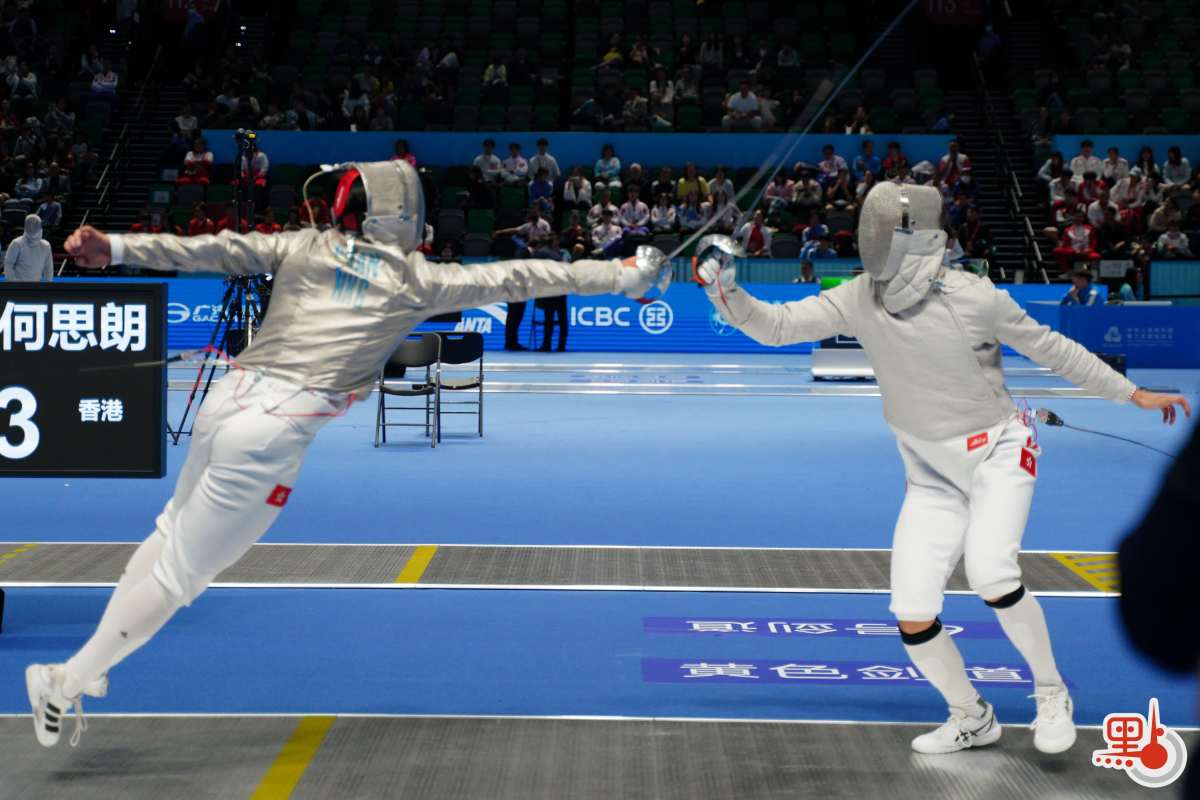 另外,何柏霖則以15比10擊敗廣東的鄧小浩,香港男子佩劍隊共有兩名港將殺入16強。