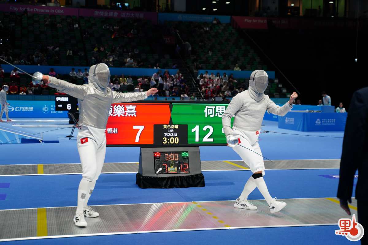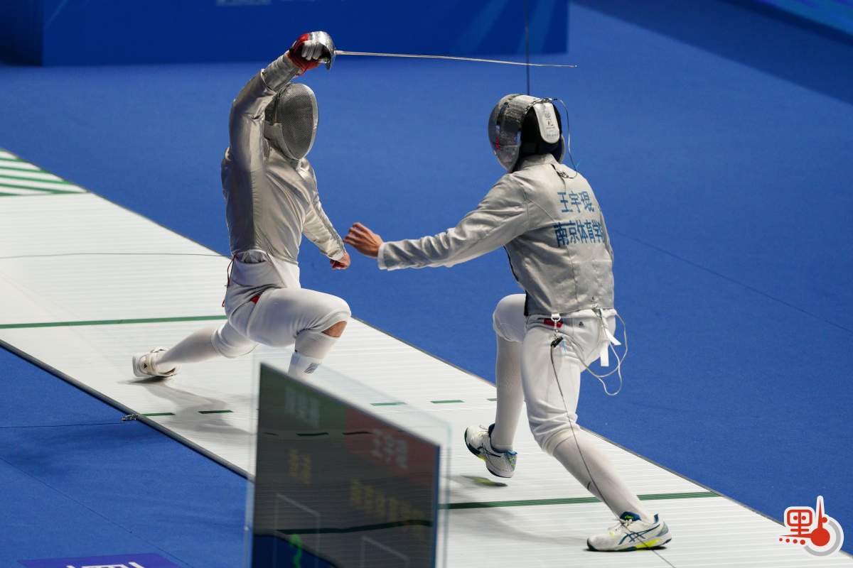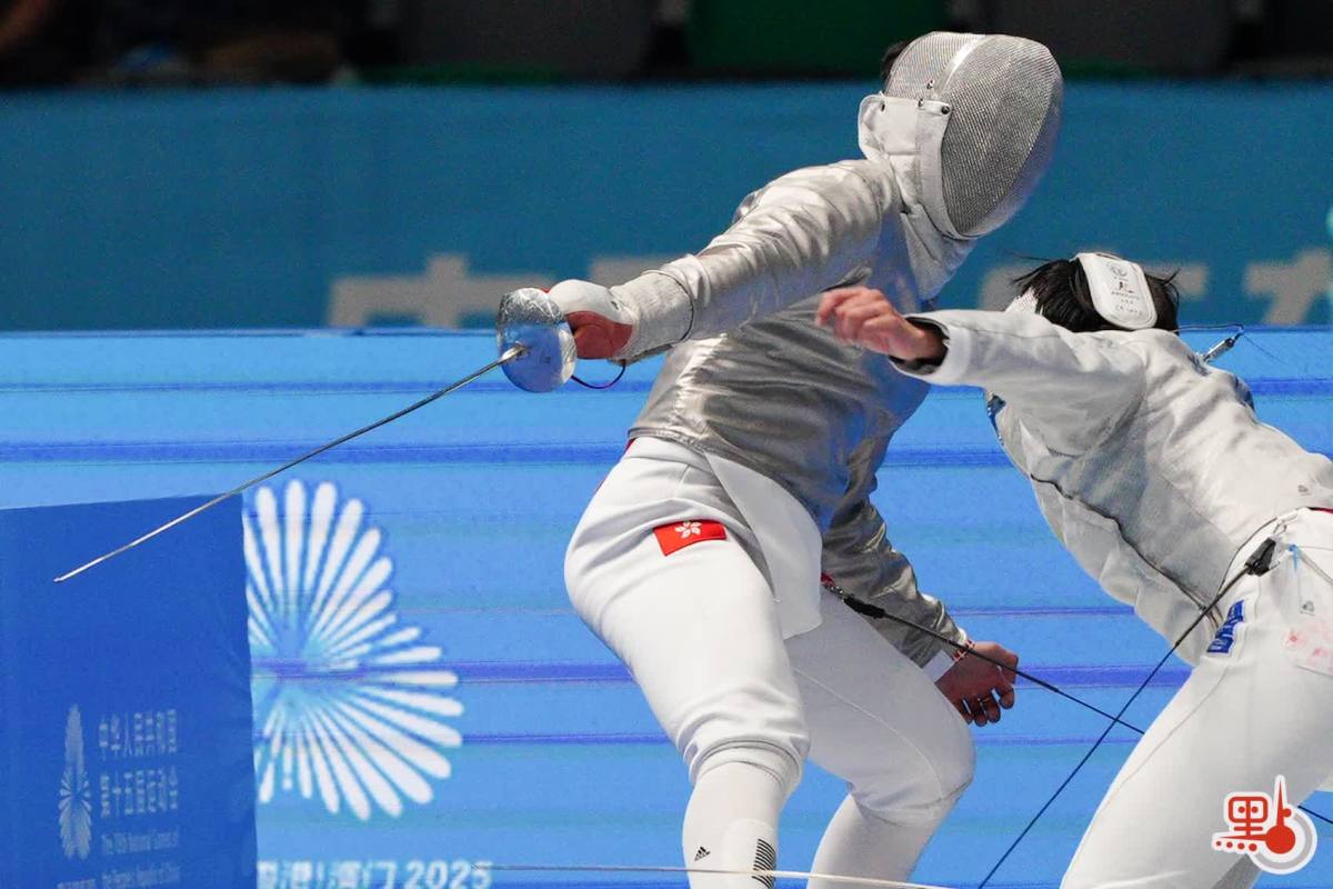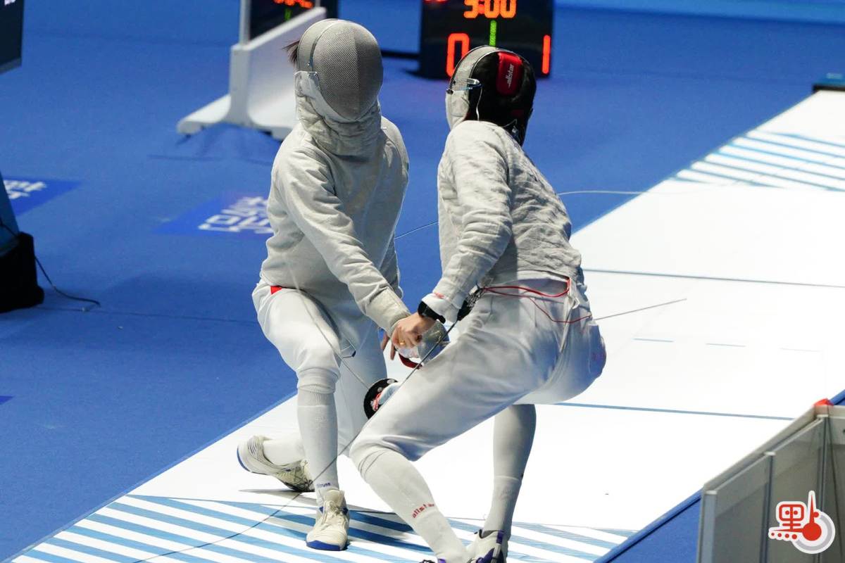 另外,何柏霖則以15比10擊敗廣東的鄧小浩,香港男子佩劍隊共有兩名港將殺入16強。
