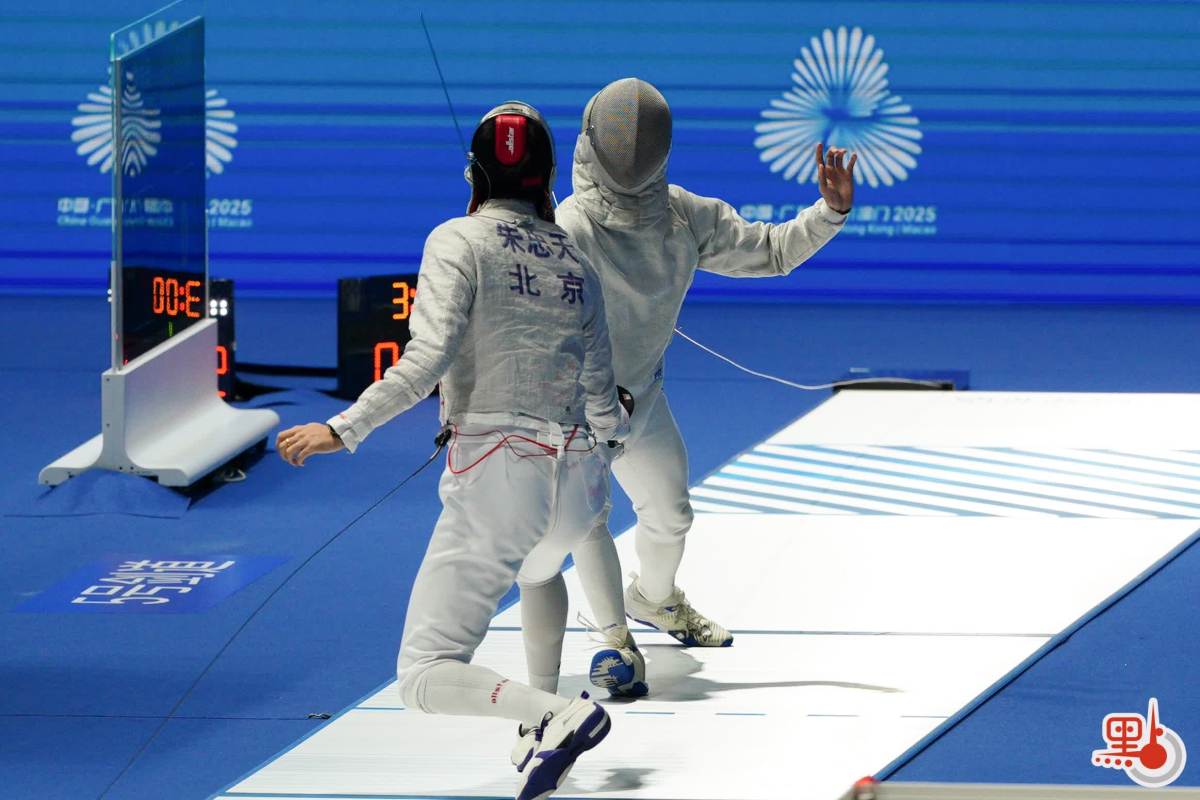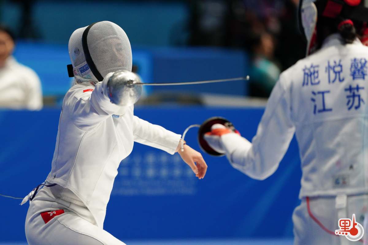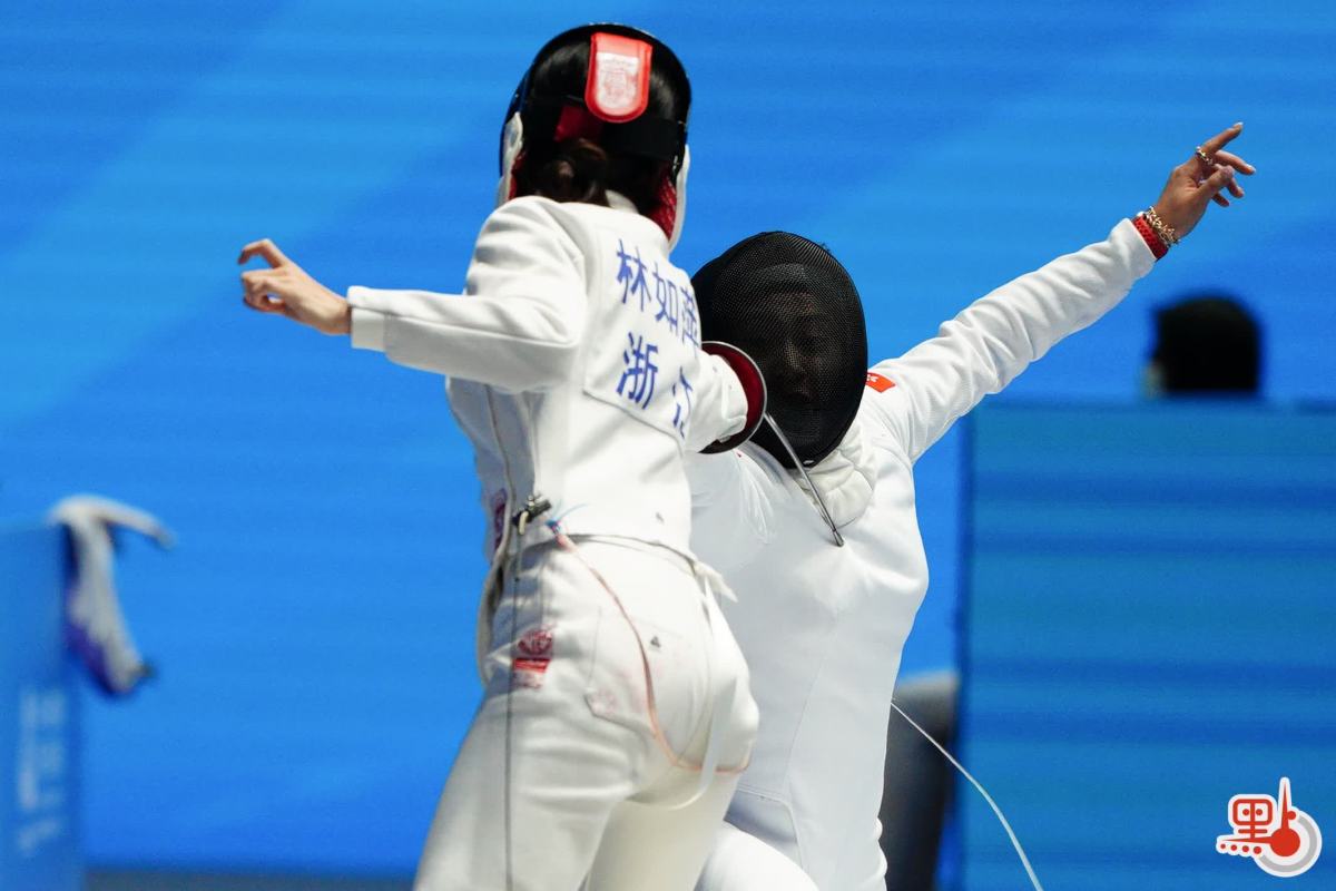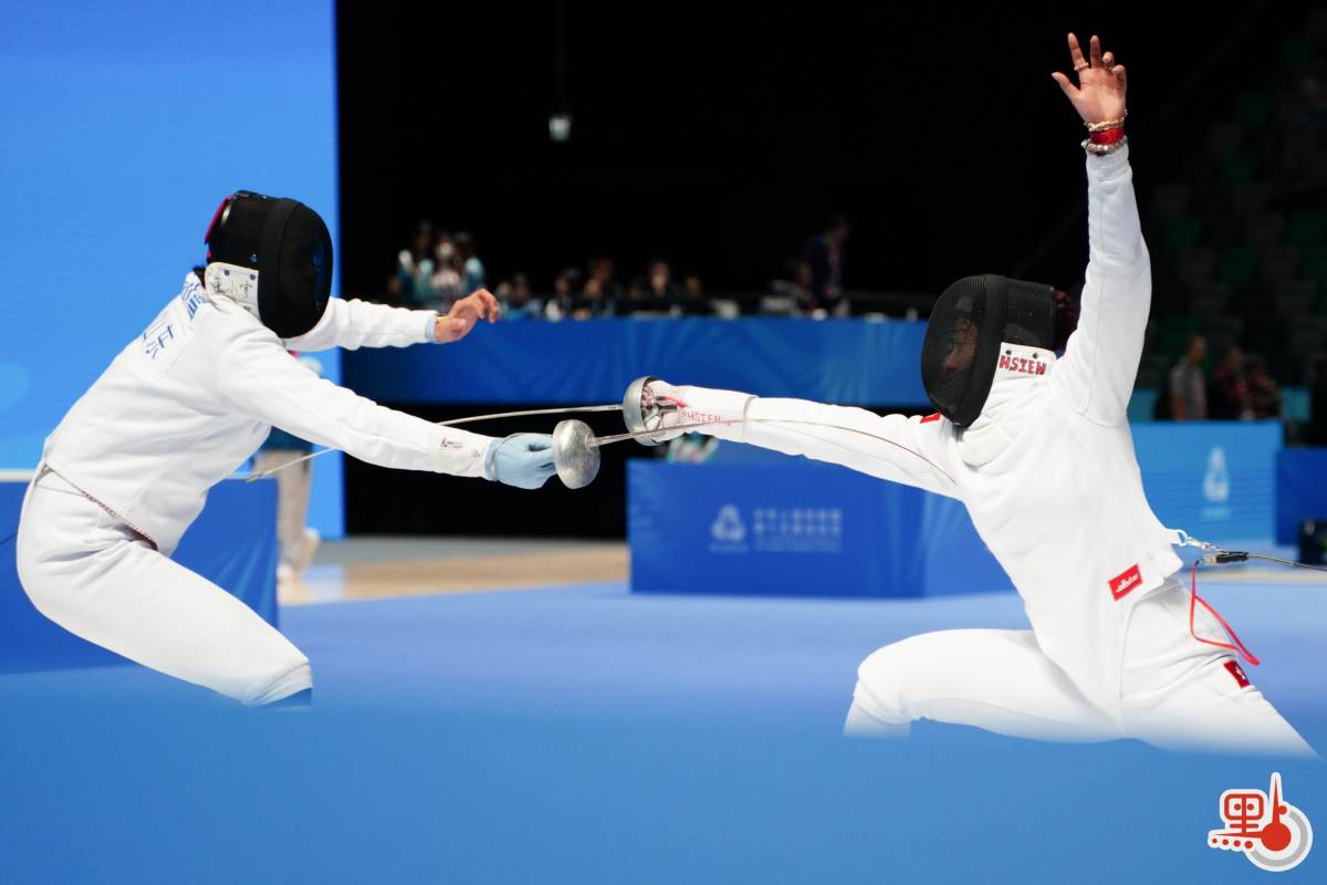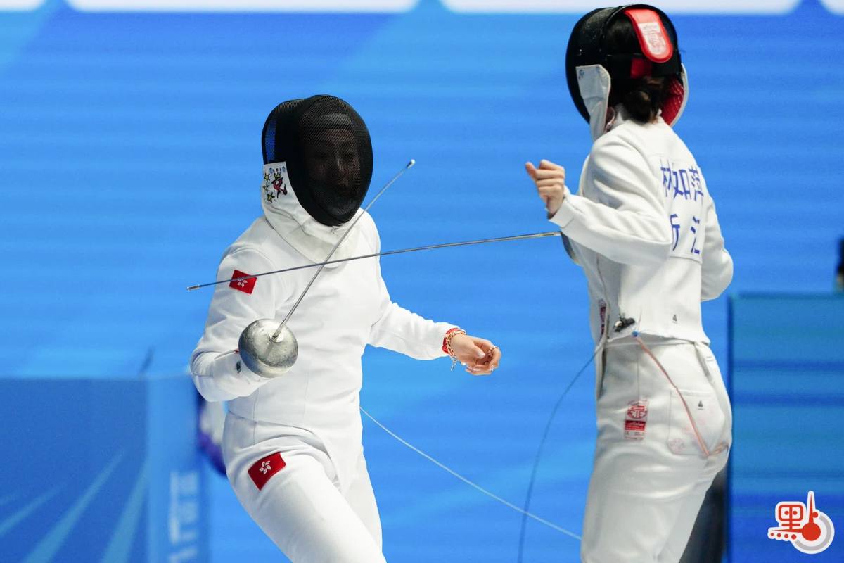 另外,何柏霖則以15比10擊敗廣東的鄧小浩,香港男子佩劍隊共有兩名港將殺入16強。