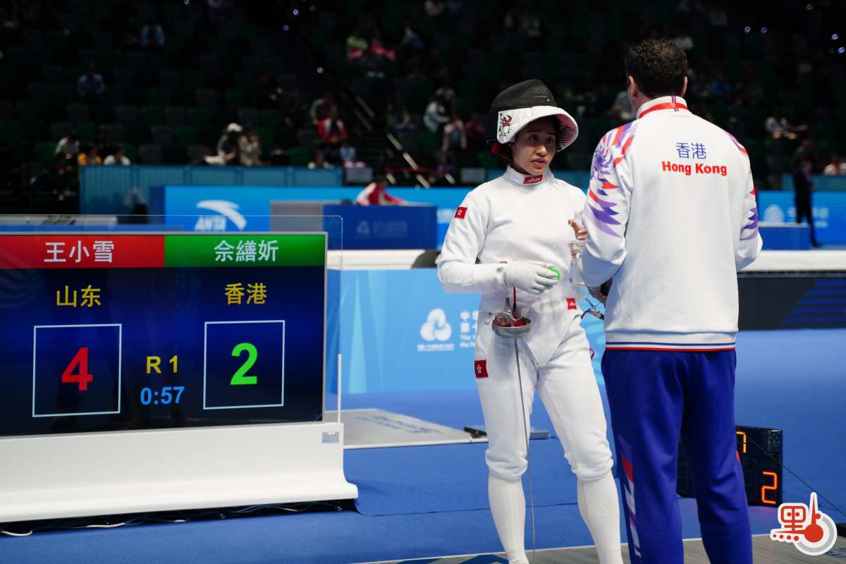 女重方面有世界排名第四的佘繕妡、陳渭泠及朱嘉望出戰個人賽。當中佘繕妡在分組賽中5戰全勝,而陳渭泠則取得4勝1負,朱嘉望就取得2勝3負,三名港將均順利晉級淘汰賽。佘繕妡於中午12時20分出戰32強對山東劍手王小雪。