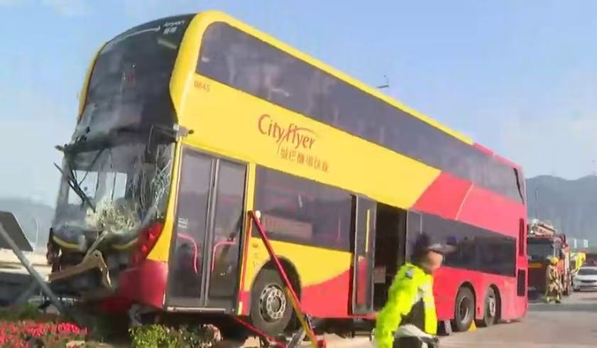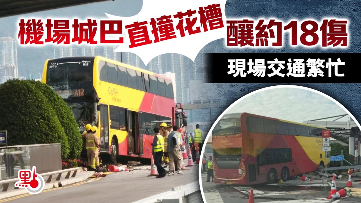【點新聞報道】今日(15日)下午3時許,一輛A12線城巴駛至暢航路1號時疑似失控,車頭在撞毁路牌及防撞鐵欄後衝入花槽,乘客東歪西倒釀多人受傷。警員接報後趕至現場,由消防員及救護人員協助乘客離開車廂,初步約有18人受傷,幸傷勢不算嚴重,已分批由救護車送院治理。警方正調查意外原因。