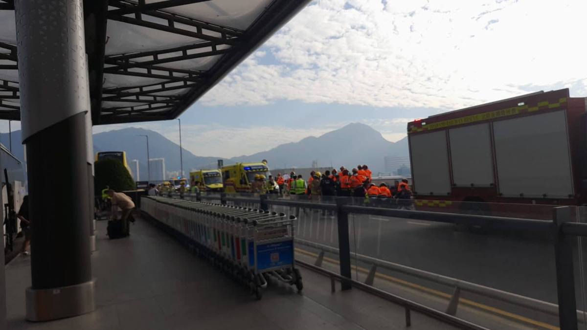 運輸署表示,現時上址交通繁忙,因交通意外,暢航路近香港國際機場一號客運大樓離港層落客區的部分行車線現已封閉,駕駛人士只可使用餘下行車線行車。