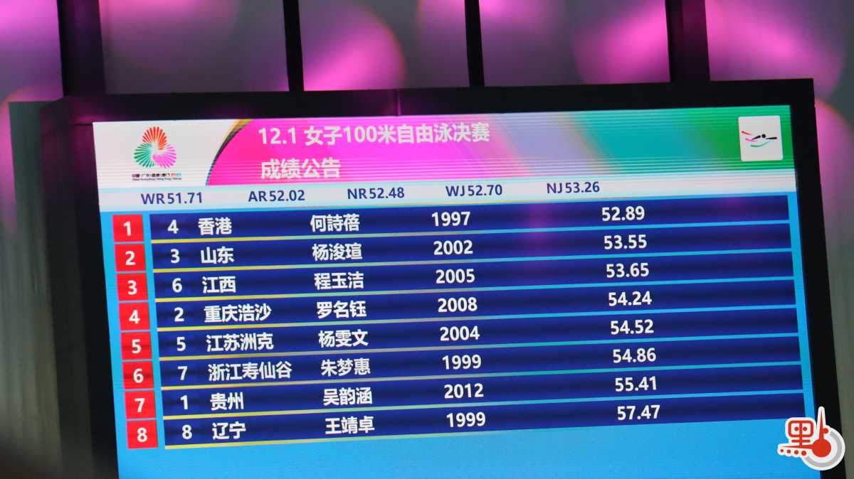 山東隊楊浚瑄以53.55秒獲得銀牌,江西選手程玉潔以53.65秒位列第三。