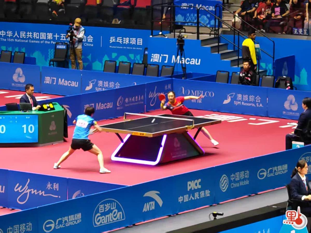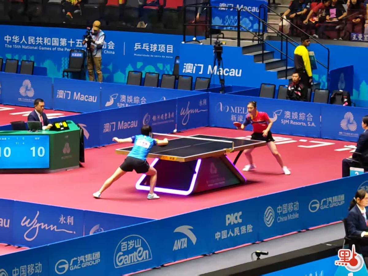 【點新聞報道】第十五屆全運會乒乓球女單半決賽今晚(15日)正式開始,山東隊陳夢與黑龍江隊王曼昱爭入決賽資格,重磅賽事吸引一眾球迷到場觀看,現場幾乎座無空席,氣氛十分火熱。