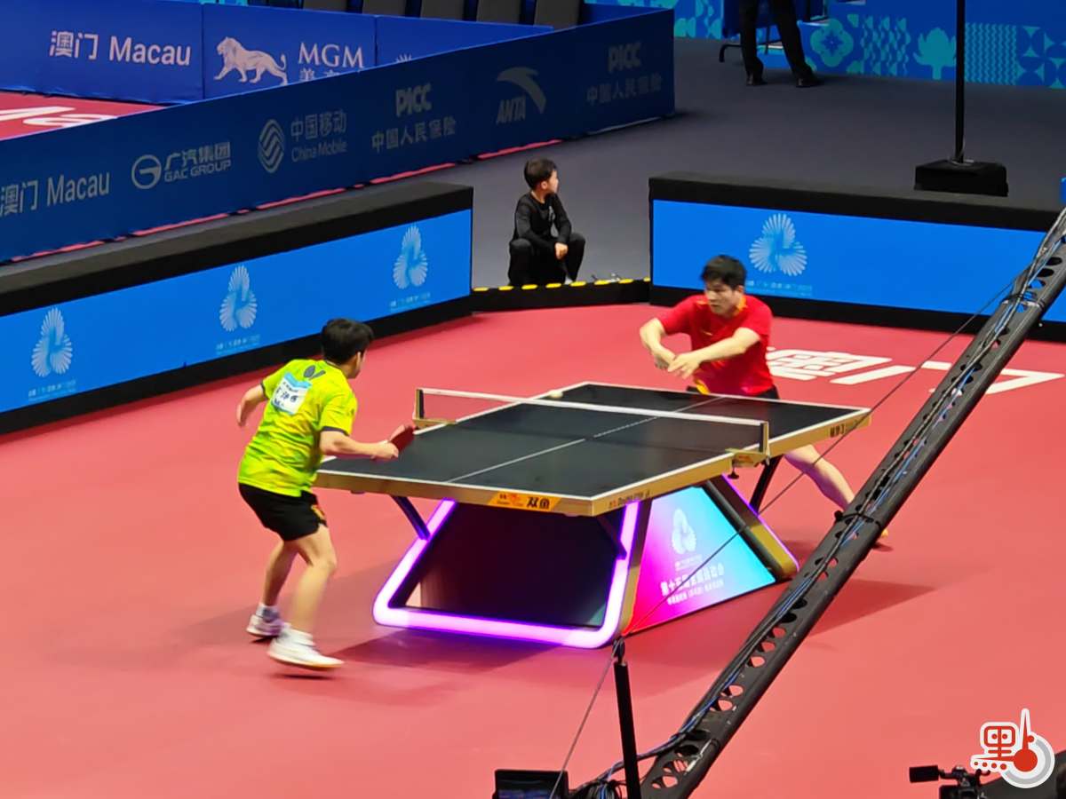 首局比賽樊振東以11比9先拿下一局,隨後第二局更加激烈,林詩棟先得賽點,隨後以11比8贏下本局。此時局分為1-1平。