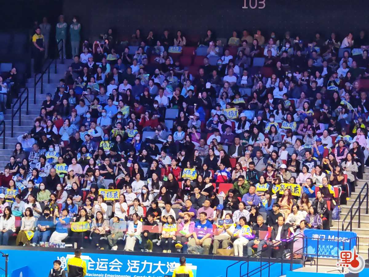 記者觀察到,決賽期間,澳門銀河綜藝館的看台席位幾乎坐滿,觀眾席上歡呼和掌聲不斷,許多球迷還手持橫幅給選手加油。
