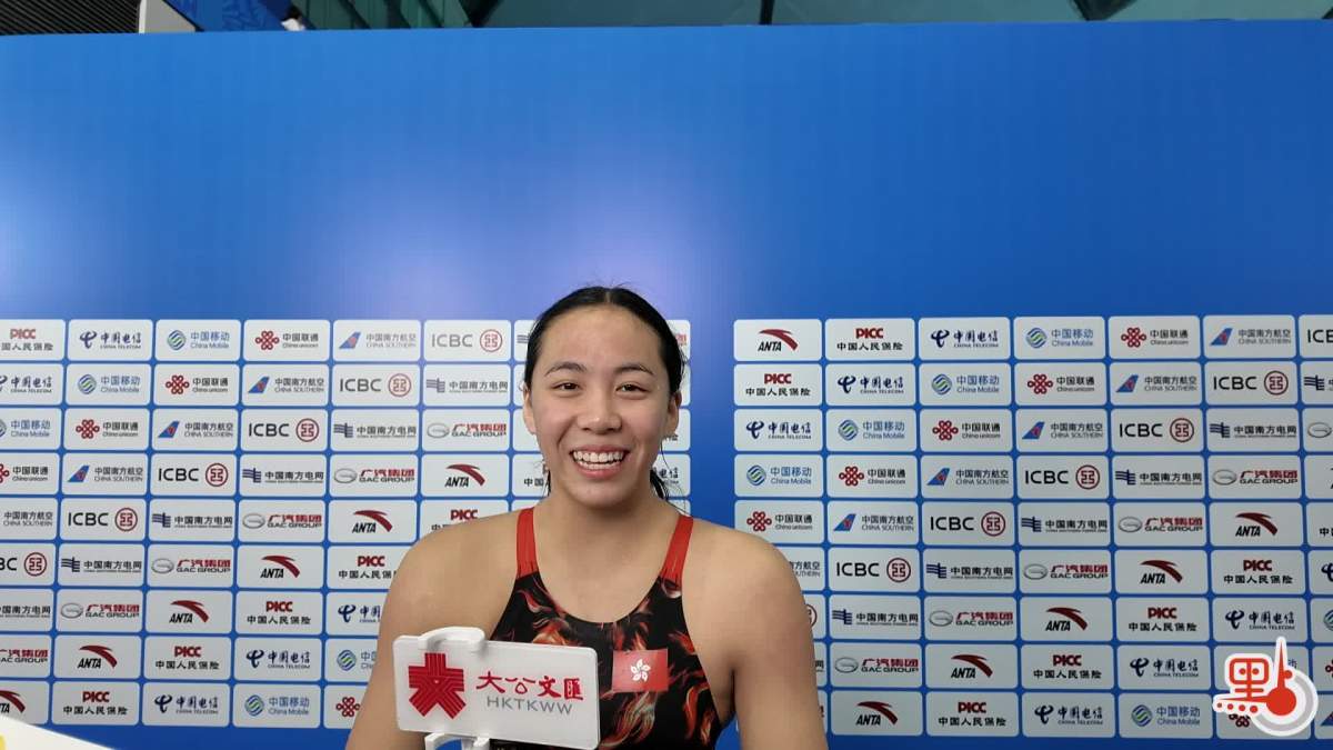 「今天晚上很開心,跟着大師姐(何詩蓓)一起游,跟着大師姐的節奏,拿到一個很滿意的成績,很開心。」文薈喬賽後表示,前兩天發揮的不太好,自己在這場比賽前也做了調整,把不開心化作動力。